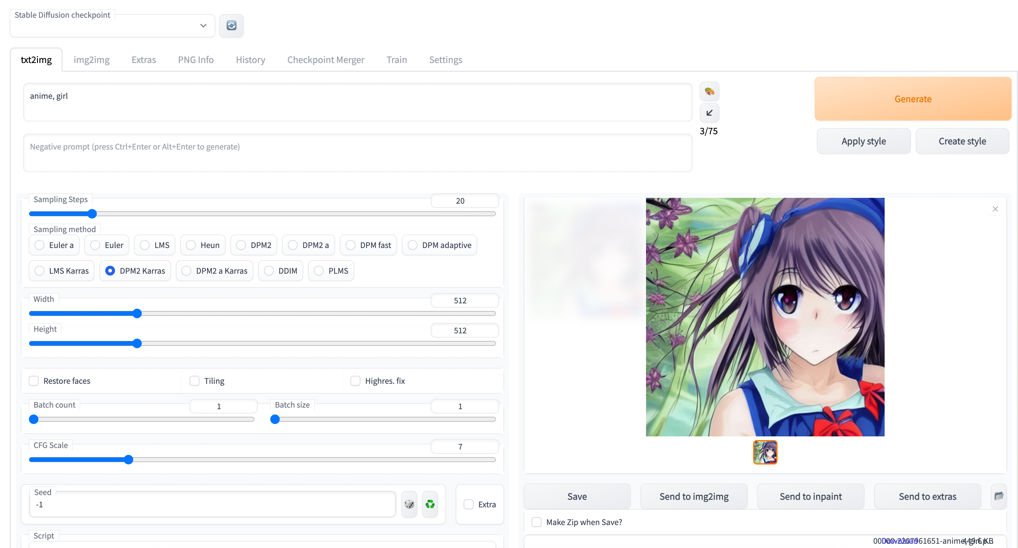 4. Запускаем веб-морду локально и пишем запрос на английском языке - например: anime, girl