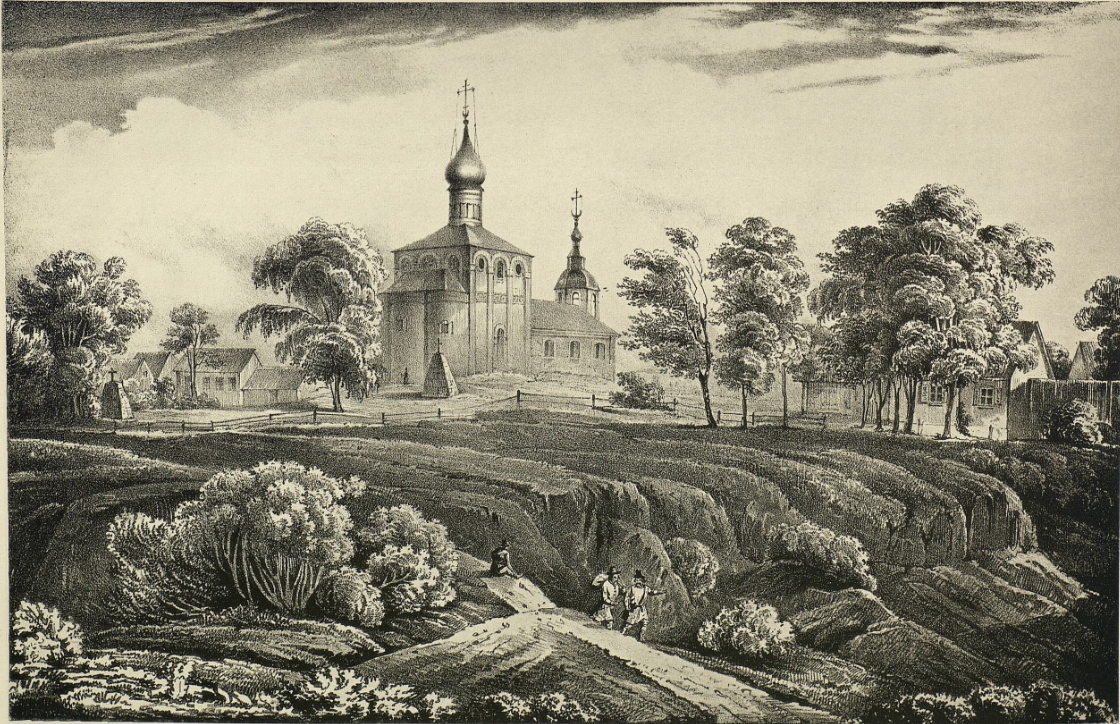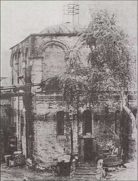 На раскрашенной гравюре XIX века, изображающей Симонов монастырь, справа видна и церковь Рождества Пресвятой Богородицы.