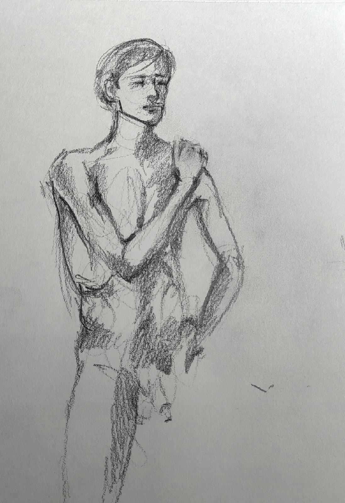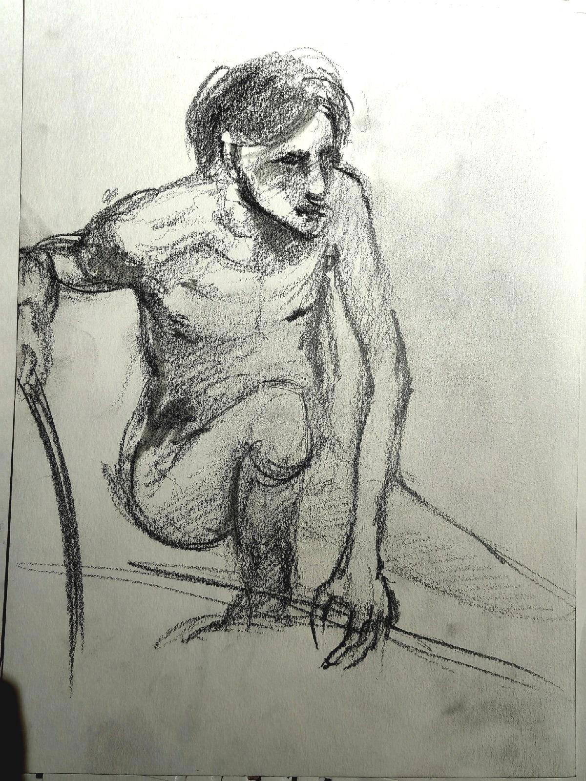 А в этот раз рисовали моего любимого натурщика Сергея. Он очень высок, невероятно худ и похож на Гоголя:) Идеально держит позы, не повторяется и даже развлекает нас шутками в процессе:)