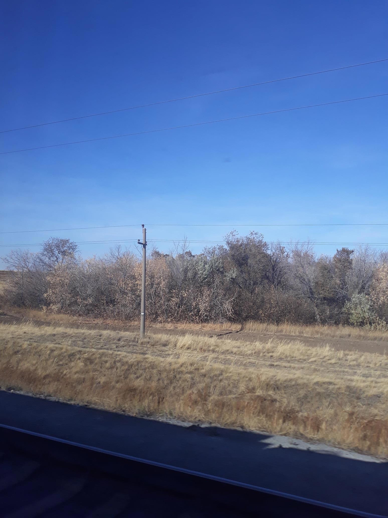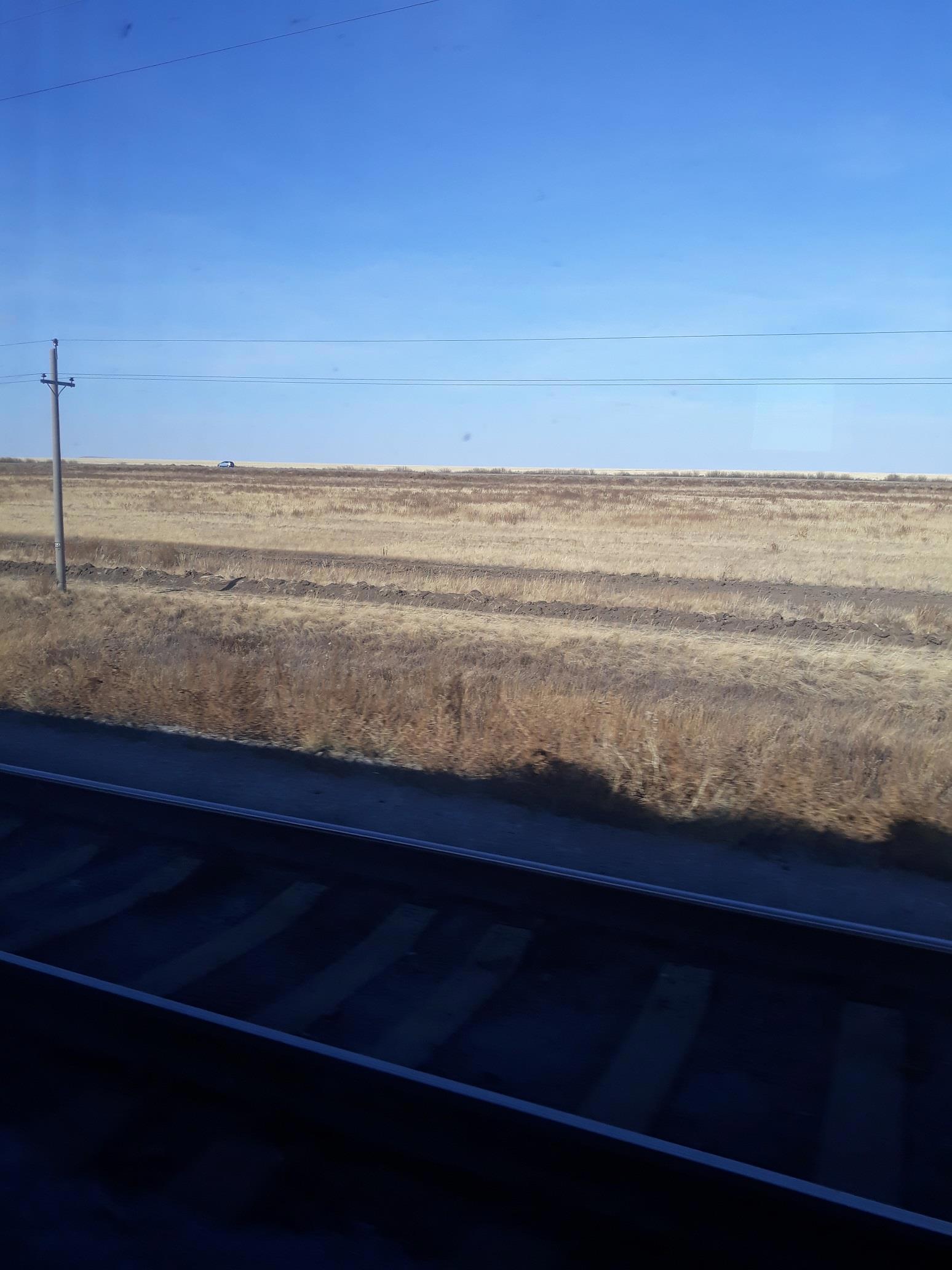 Зато весь протуберанц мы пересидели в вагоне-ресторане. За окном мелькнули пограничные заграждения посреди желтой степи, включился российский роуминг, появилась розовая полоса заката у края неба, встала над степью великолепная апельсиновая Луна, мелькнули ограждения российско-казахстанской границы, и роуминг выключился.