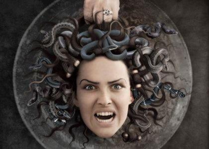 Спасаясь от озабоченного Посейдона, Медуза пыталась найти убежище в храме Афины, но Посейдон настиг ее там и надругался. Для Афины наступил звездный час реванша, и под предлогом того, что именно Медуза повинна в осквернении храма, богиня отомстила девушке, превратив ее в чудовище со змеями вместо волос и взглядом, обращающим людей в камень. Так Медуза ("защитница") превратилась в Горгону ("ужасную").