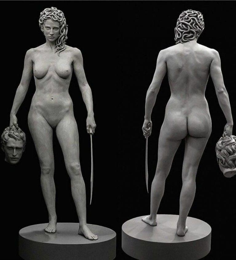 В пику мифу и флорентийскому бронзовому шедевру Гарбати создал свою статую - «Медуза с головой Персея».
