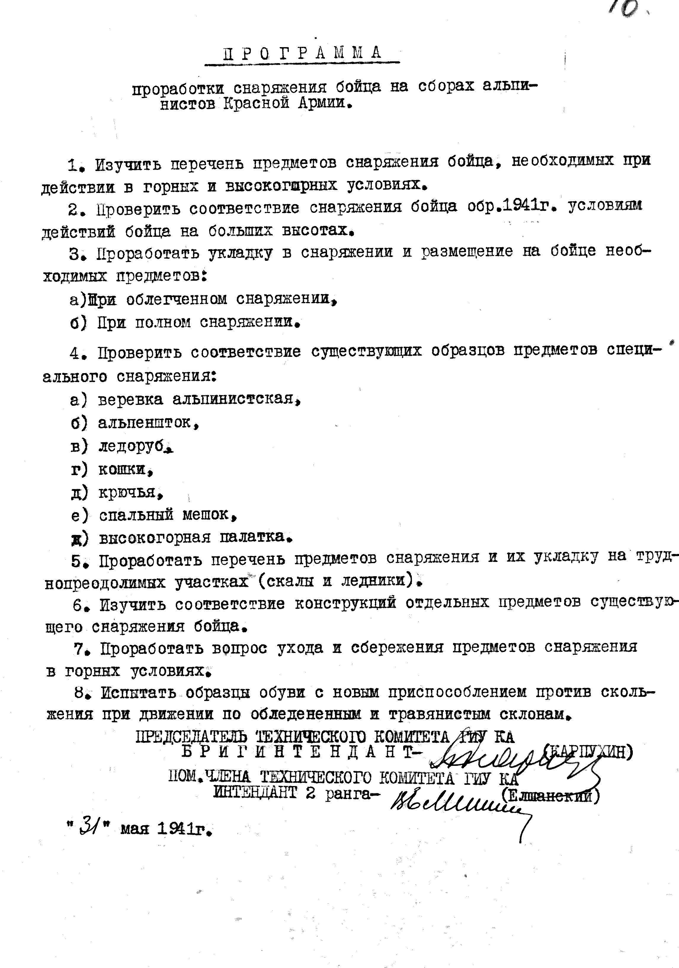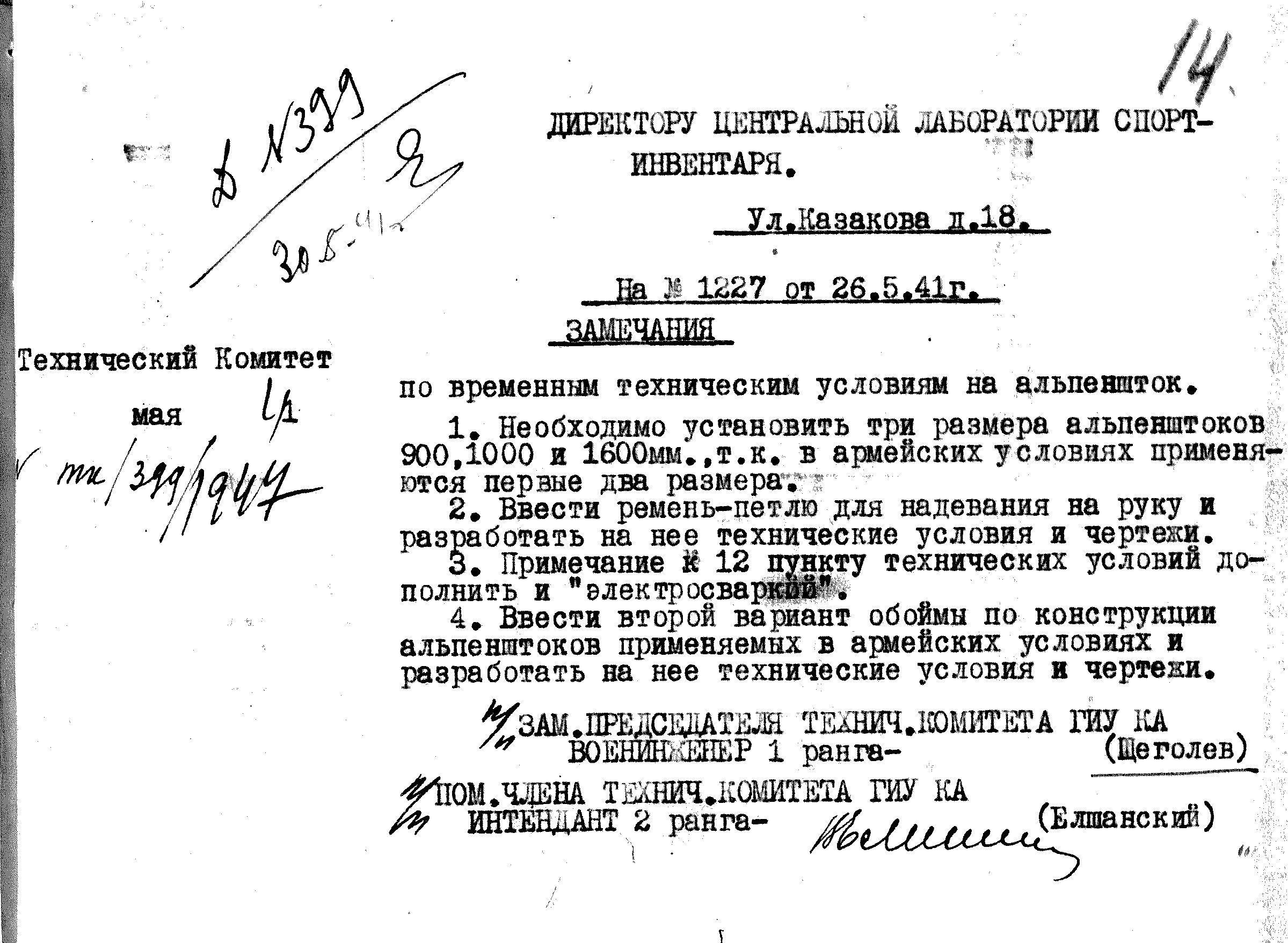 Внимание к доработке и изменениям горного снаряжения уделялось и ранее. Так, в мае 1941 г., Технический Комитетом Главного Интендантского Управления были приняты изменения в технические условия на альпеншток: