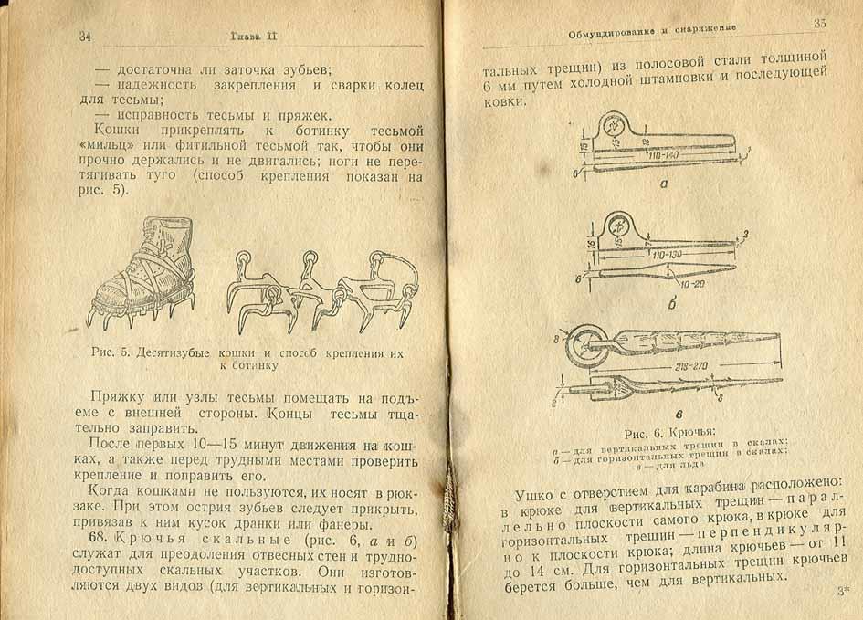 Рисунки горного снаряжения образца 1930-х годов, дают представление о том, как выглядели эти предметы: