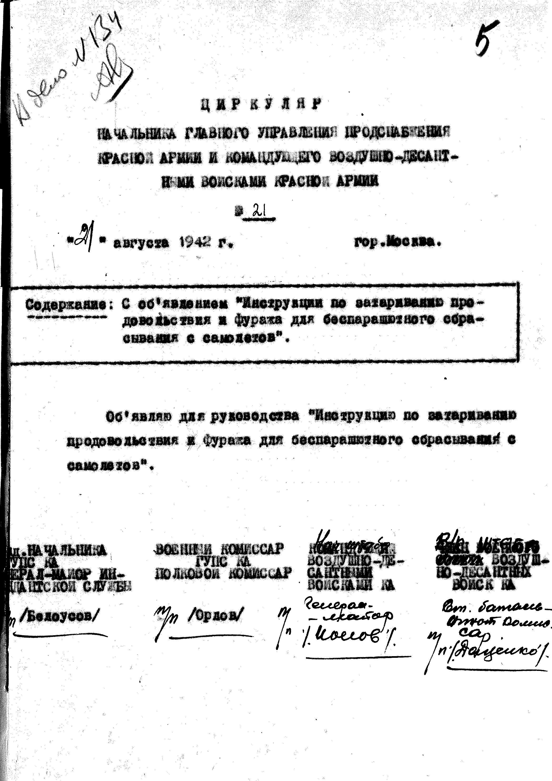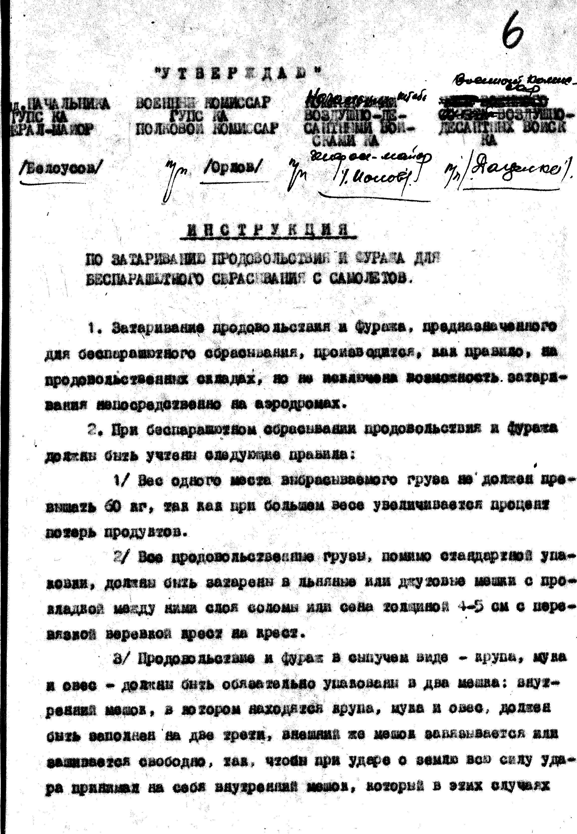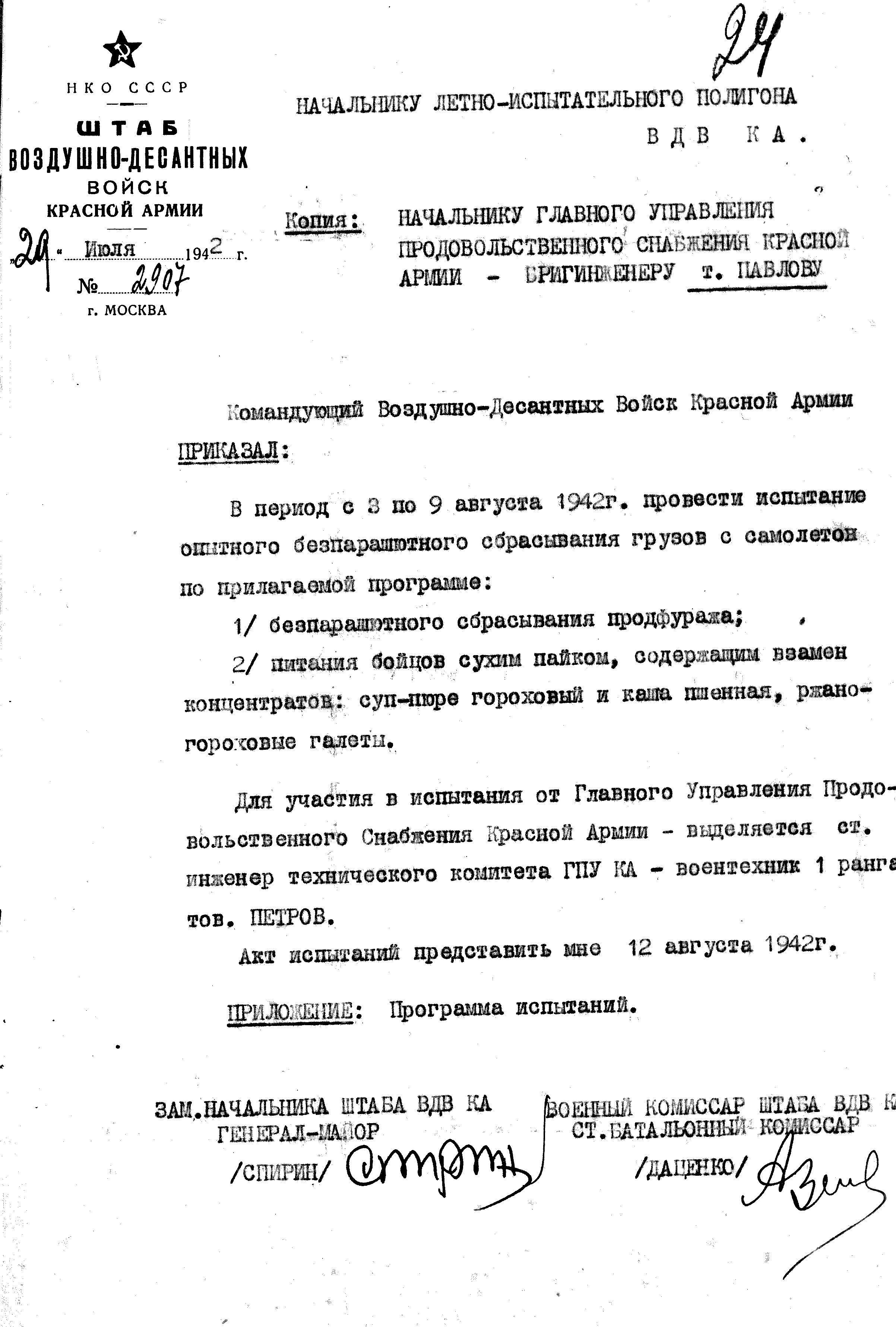 А окончательным итогом работы стал краткий совместный Циркуляр, подписанный начальником Главного Управления Продснабжения и командованием ВДВ КА: