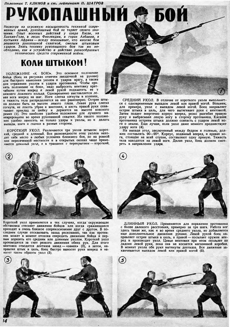 А с началом Великой Отечественной войны, штыковой бой стал обязательным предметом обучения не только мобилизованных, но и ополченцев: