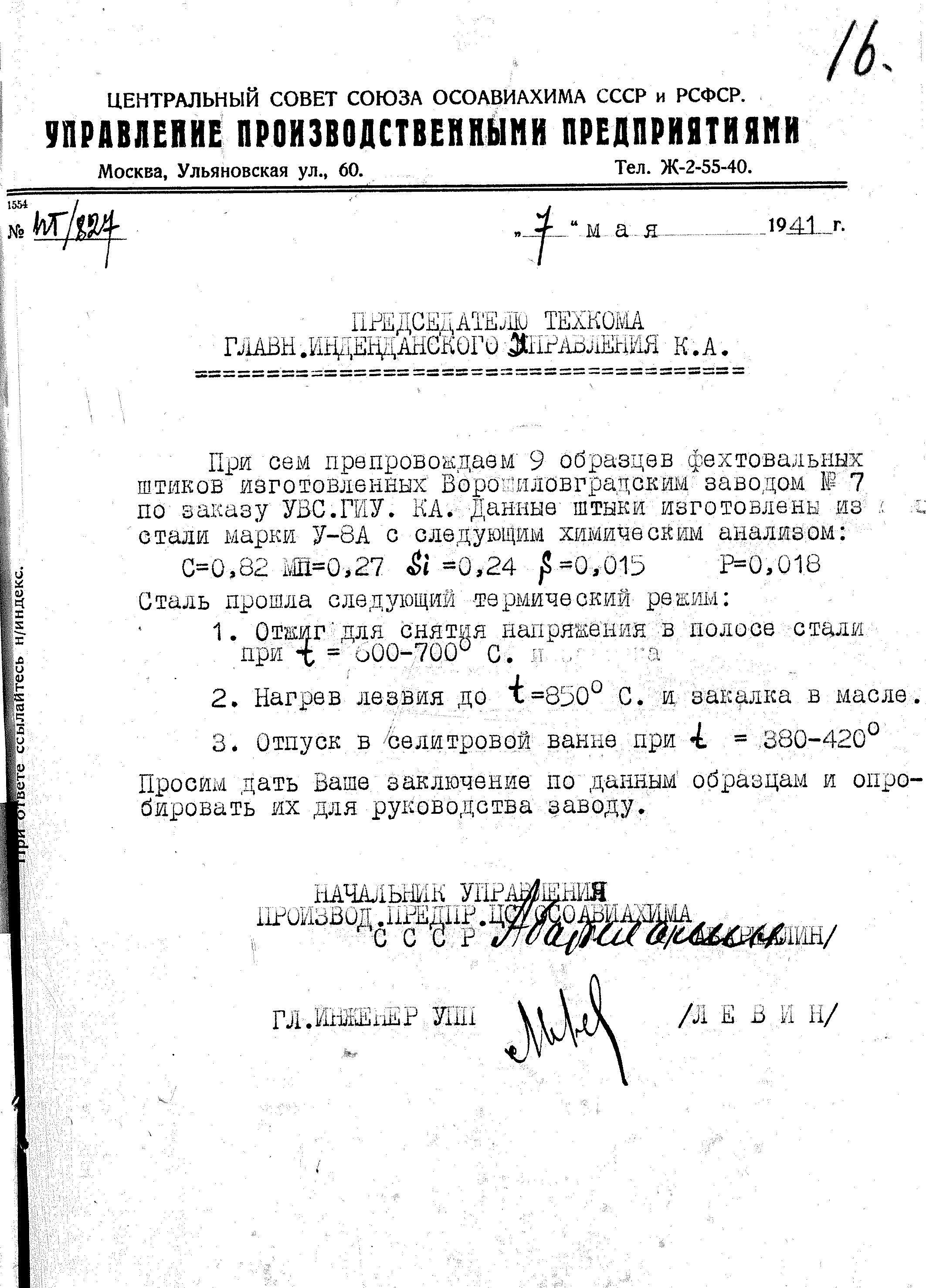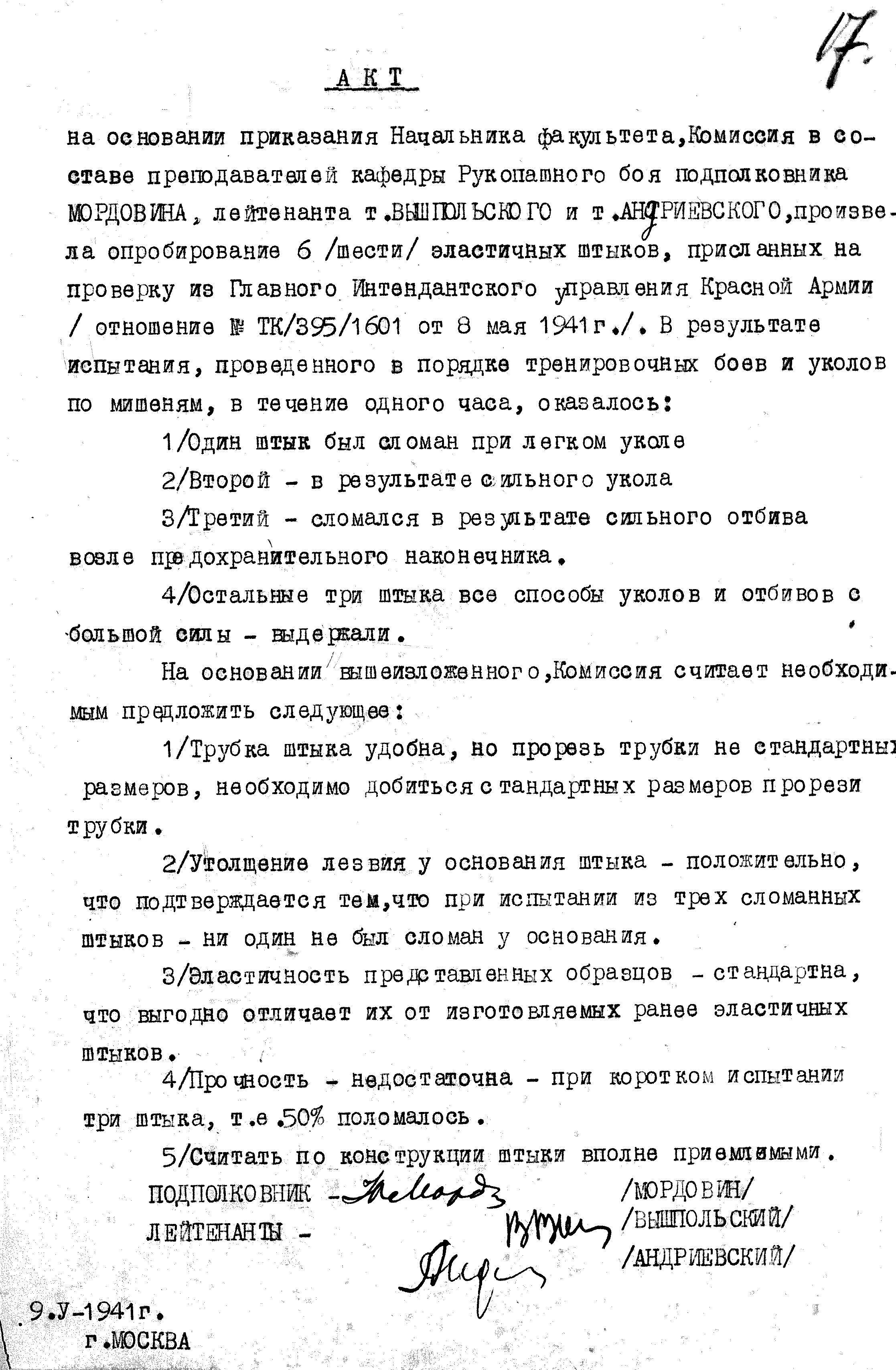 В мае 1941 г. прошли испытания новых штыков, изготовленных из углеродистой стали. Итоги, увы, не порадовали: