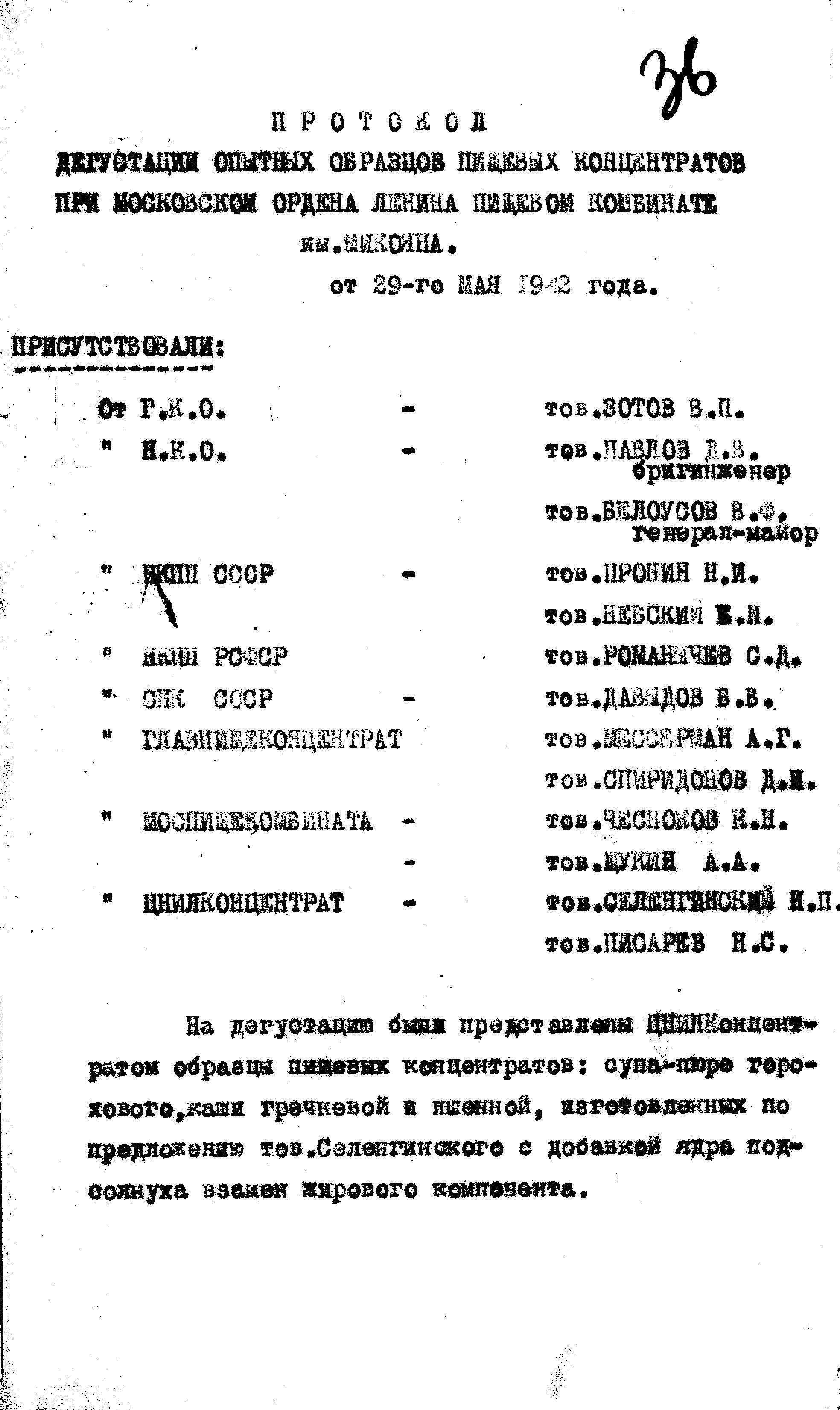 В 1942 году проходила дегустация пищевых концентратов. Продукты не являющиеся деликатесом, не самые изысканные, но крайне необходимые фронту: