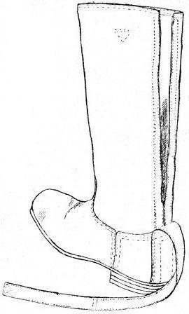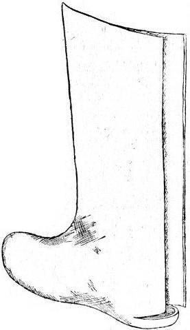 12. Валенки. Разрезать голенище валенка сзади по прямой линии до подошвы пятки и распустить линии реза на обе стороны у подошвы пятки, примерно на 10 см о каждой стороны (см. рис. 3).