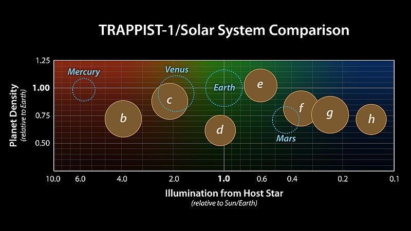 "ПочтиЗемля" за "орбитой Марса". Атмосферу, конечно, могло сдуть вспышками звезды. Но звезда - ультрахолодный красный карлик. Так что это подходящий кандидат на условия зарождения на поверхности сложностей уровня 2.