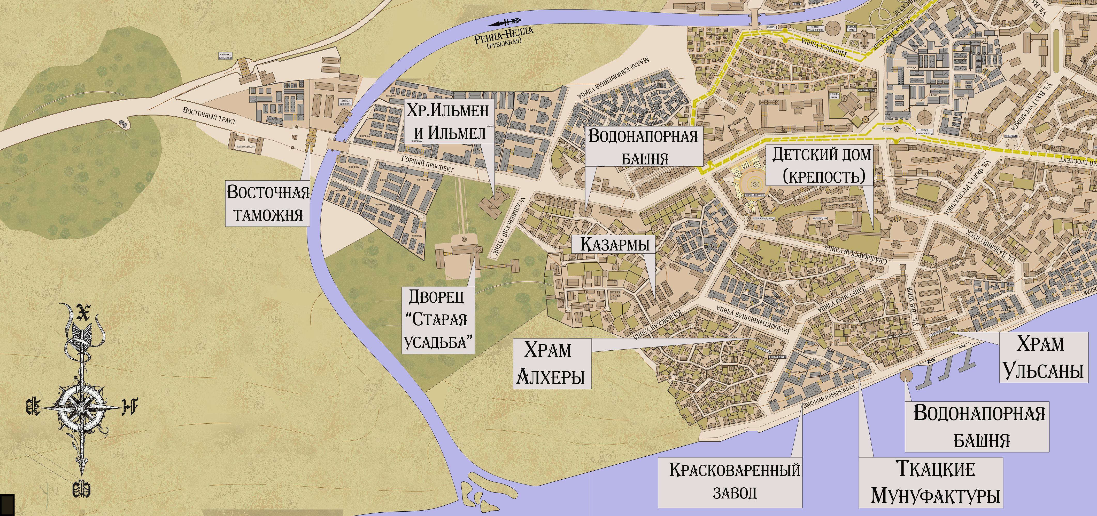 Автор: Саша ЗотовЧто ж, таки решил я все же сделать схемку с поясненями, что нарисовано в городе, не зря ведь рисовал не от балды, а по карте.