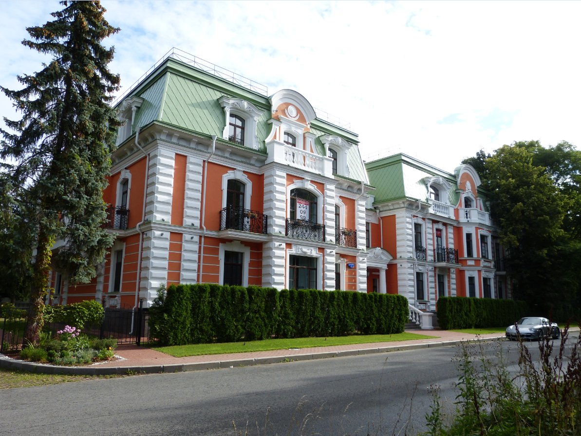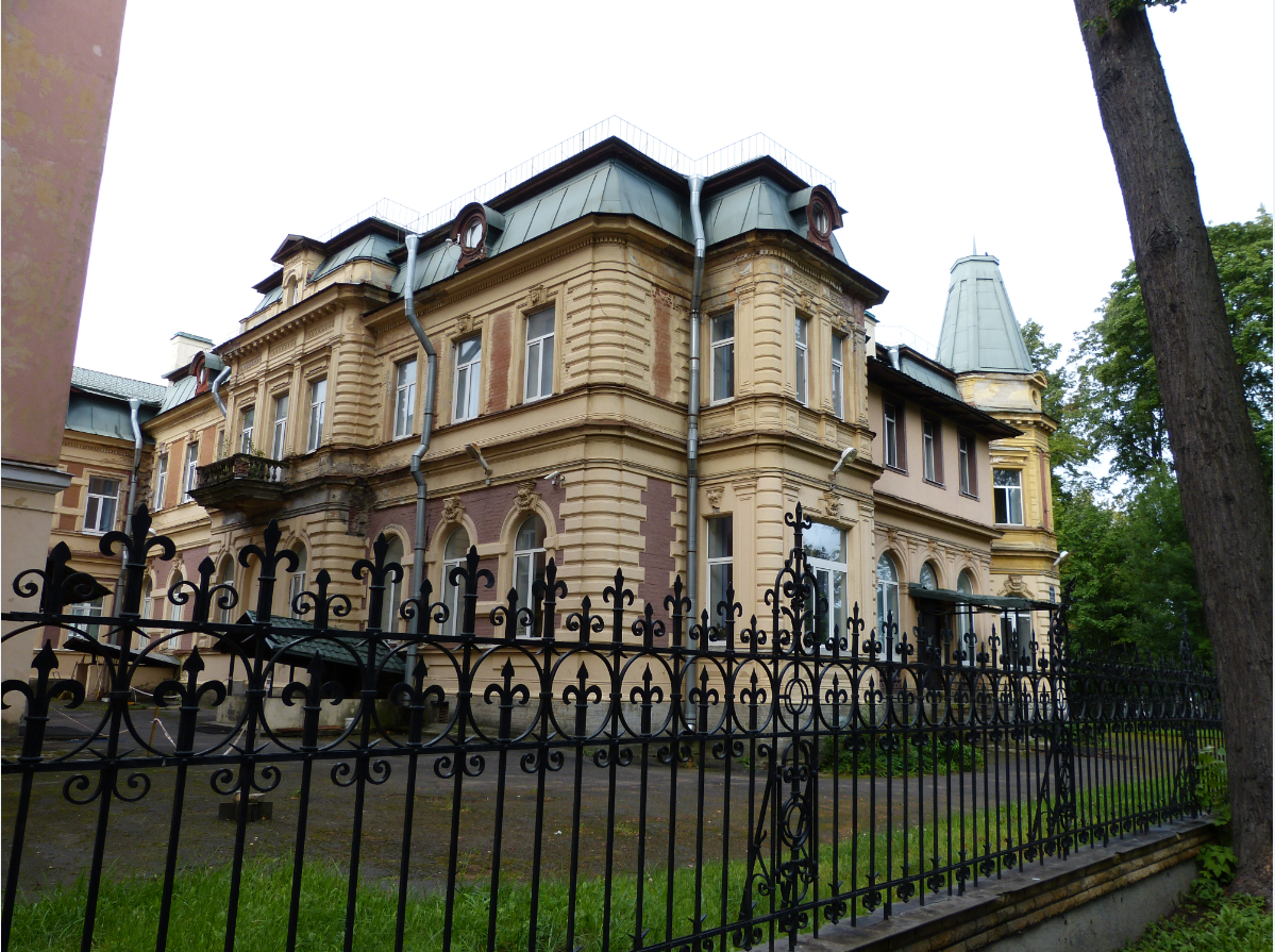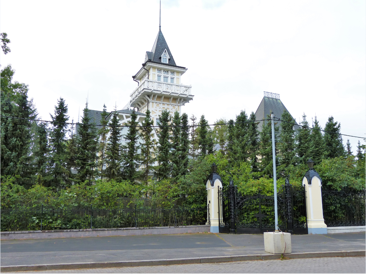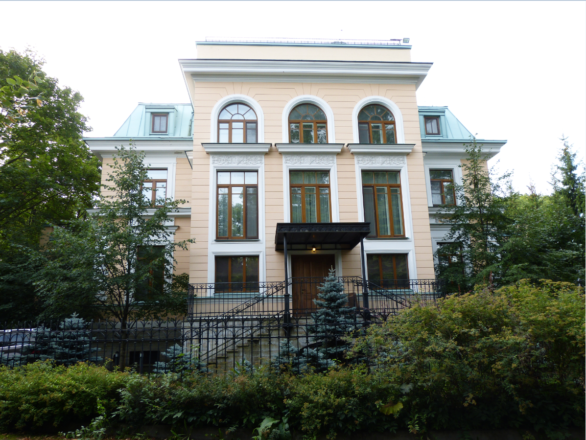 Это замечательное здание использовалось при съёмках фильма "Приключения принца Флоризеля". Но его нынешние владельцы сделали всё, чтобы увидеть полностью особняк не мог никто кроме тех, кому разрешено пройти через ворота. На мой взгляд, это жлобство.