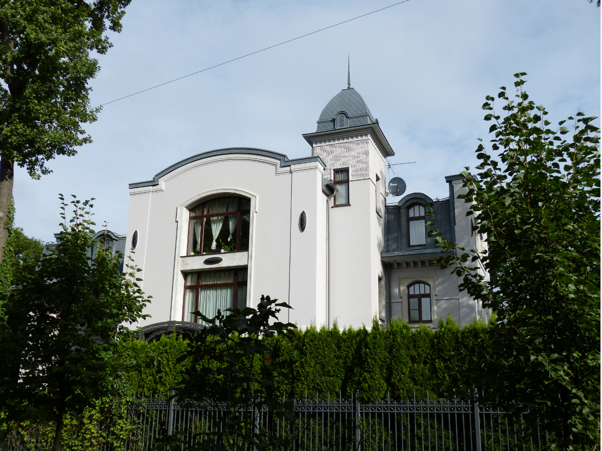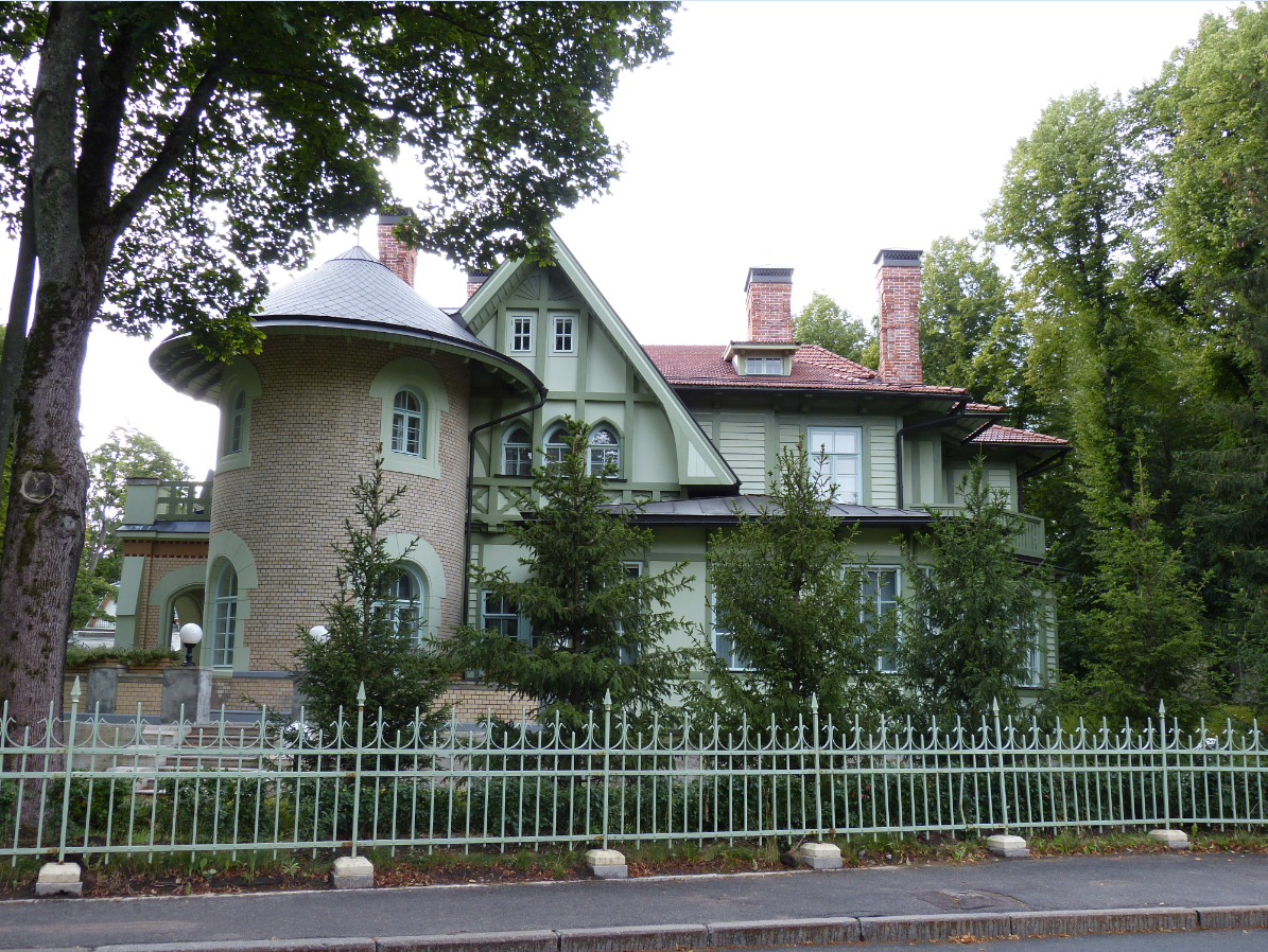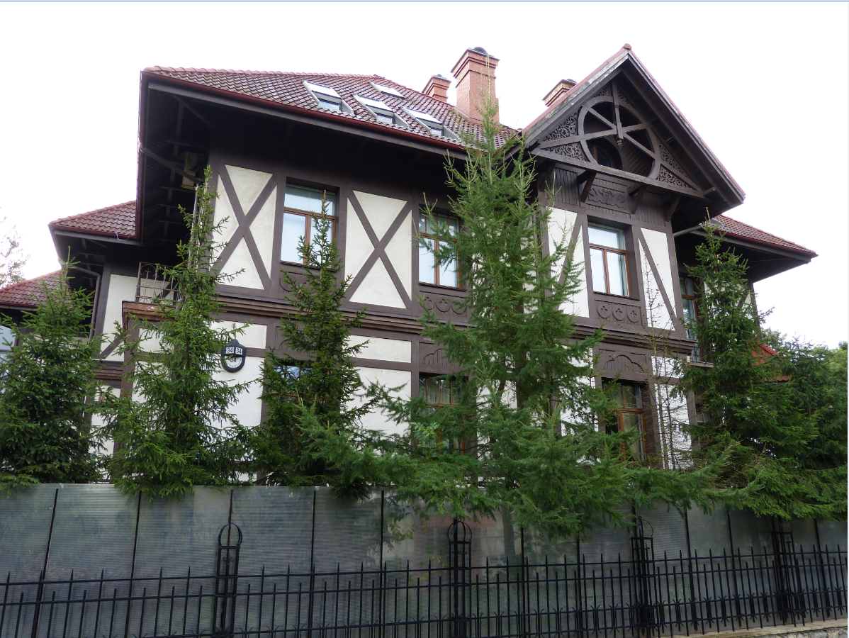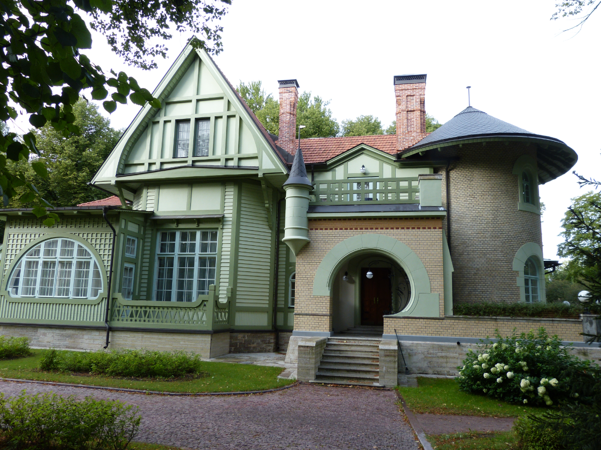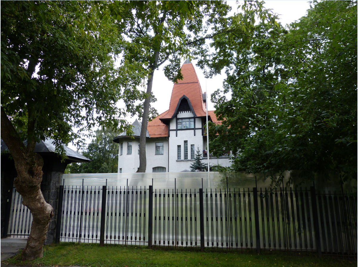 Это замечательное здание использовалось при съёмках фильма "Приключения принца Флоризеля". Но его нынешние владельцы сделали всё, чтобы увидеть полностью особняк не мог никто кроме тех, кому разрешено пройти через ворота. На мой взгляд, это жлобство.
