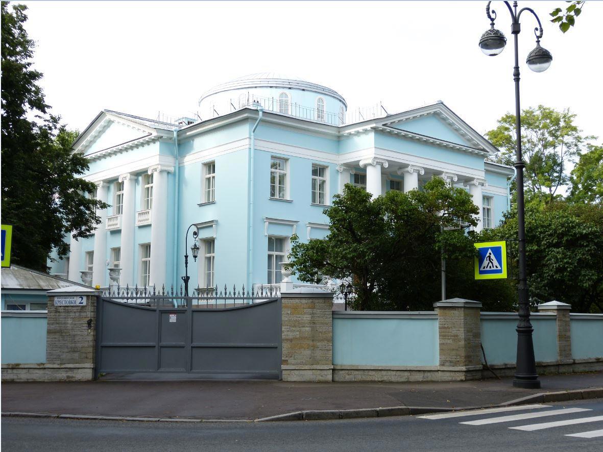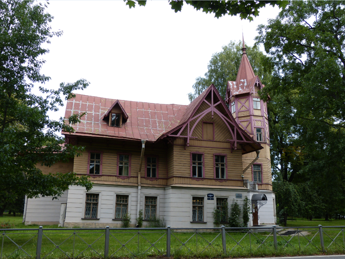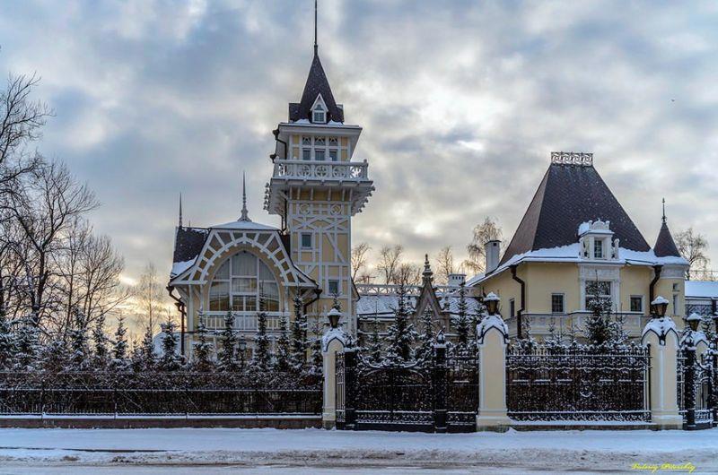 Это бывшая дача Александра Александровича Половцова. Говорят, что сейчас в ней располагается офицерский Военно-морской клуб ВМФ России. Лет десять назад кто-то сфотографировал данное здание в более холодную пору, когда на деревьях уже не было листьев.