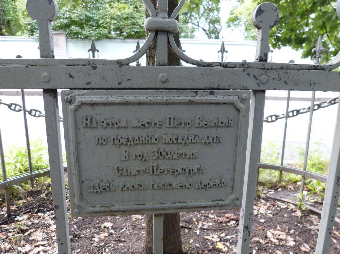 Напротив Голубой дачи когда-то рос дуб, посаженный, по легенде, самим Петром I. В конце XX века этот дуб захирел, и его спилили. А на том самом месте в 2003 году посадили новый дубок и снабдили соответствующей табличкой.