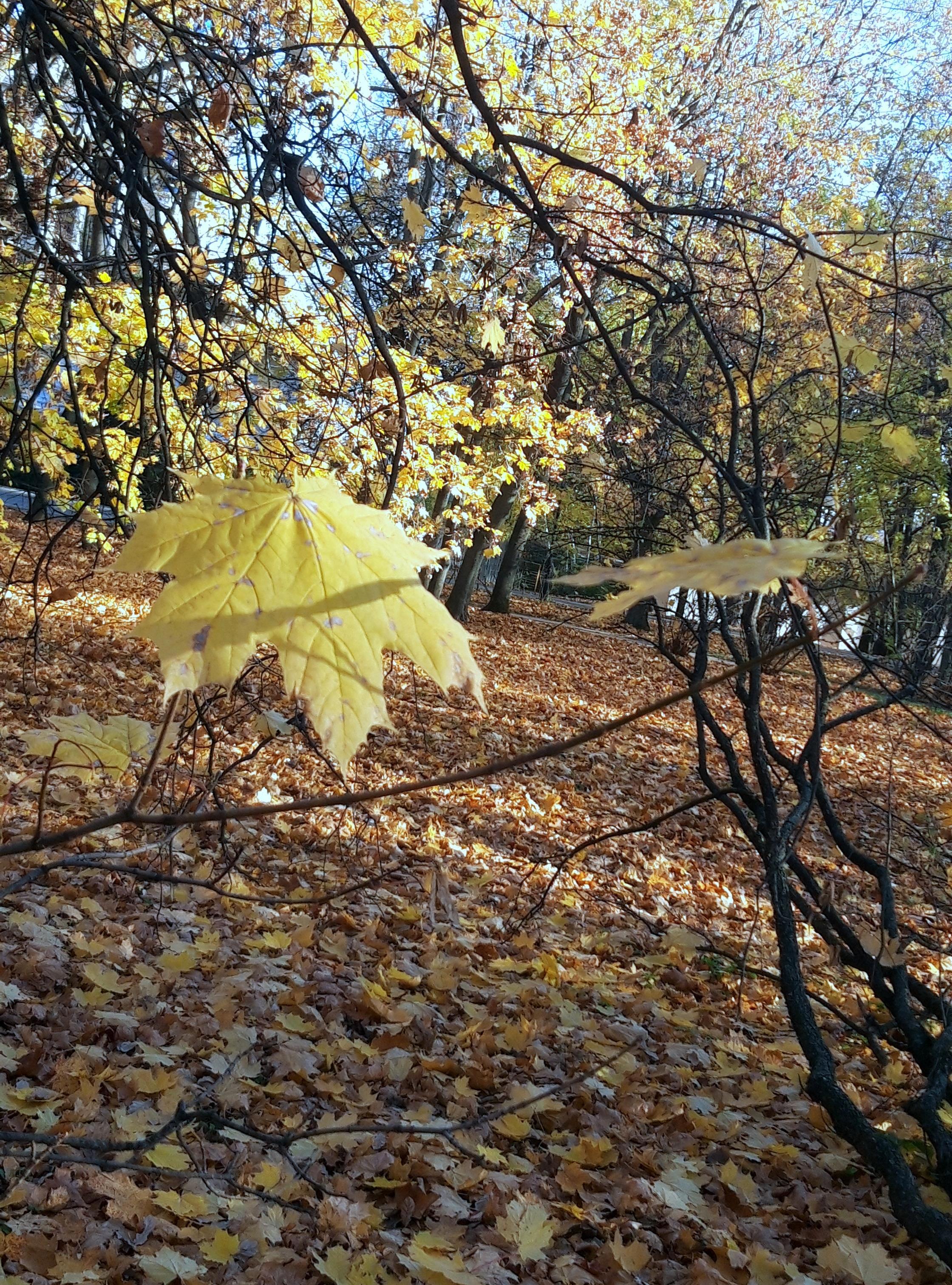 Нагулялись, нашуршались листьями. День пакой прозрачный, ясный... и не понятно солнце ли яркое или от листьев столько света....