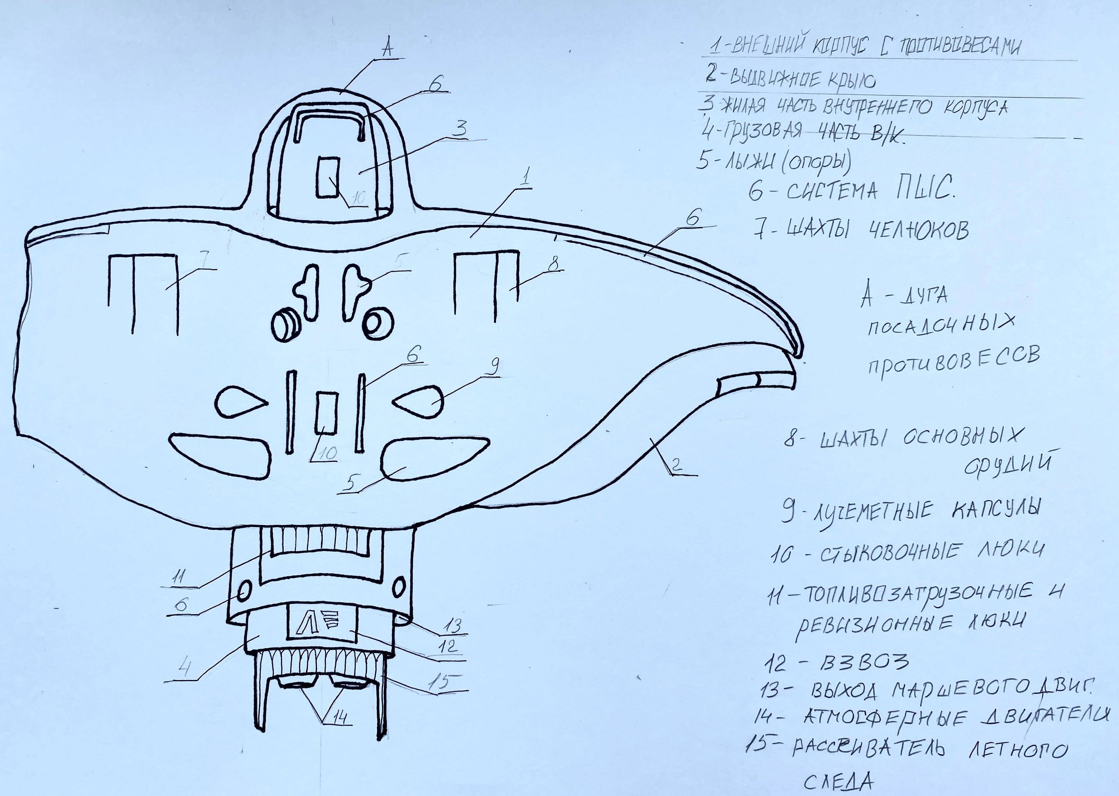 Так вот, появился у меня набросок 53-го. И даже одна из его проекций с подписями. Не я, так иллюстратор с этого нарисует что-то приличное. Схему пока трогать не буду. А вот трехмерное хотелось бы раскрасить.