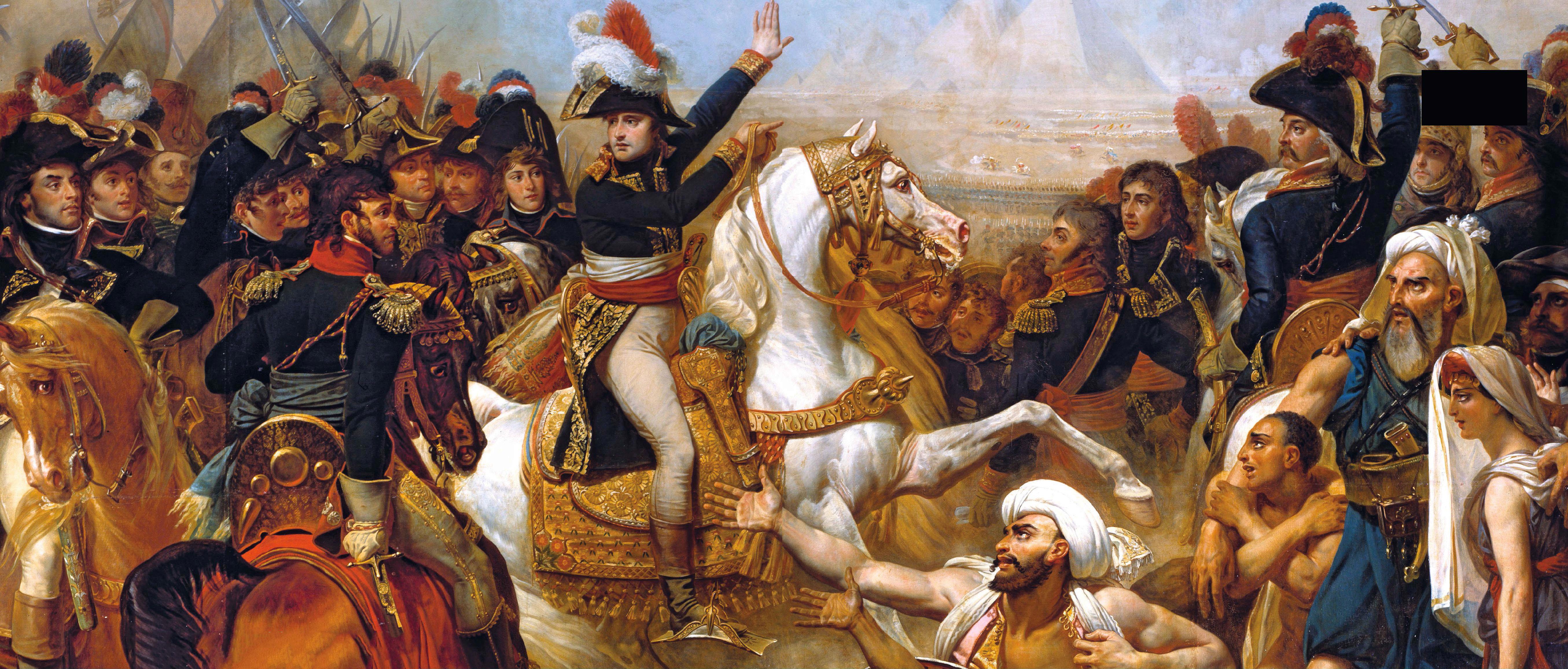 "Бонапарт на Аркольском мосту". Бонапарт поднимает в атаку французские войска, остановившиеся после нескольких неудачных попыток пересечь мост, простреливаемый австрийской картечью с близкого расстояния. Художник бежал рядом и рисовал. Город Арколе, Северная Италия. Висит у нас в Эрмитаже
