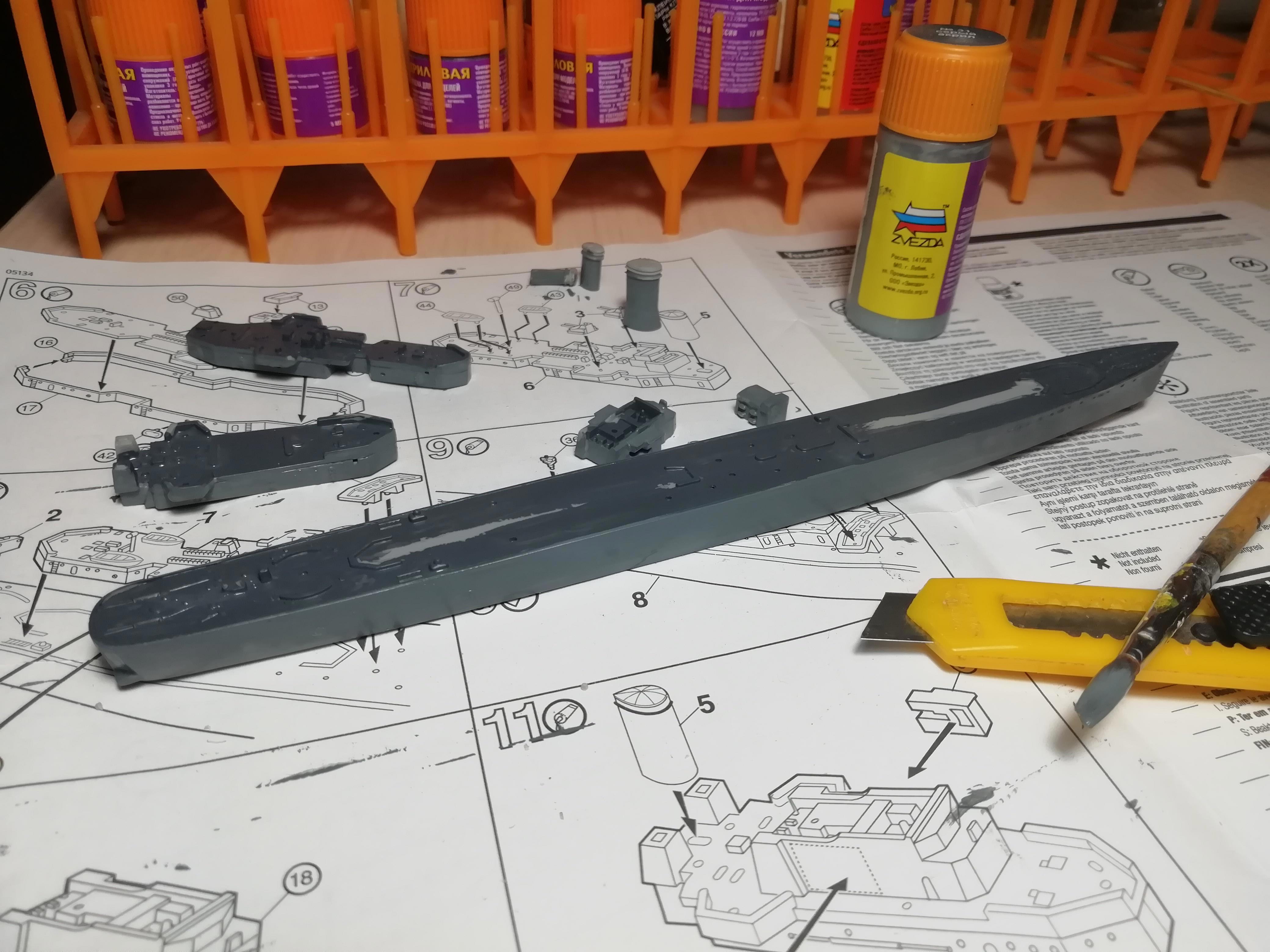 Пока особо не заморачивался - собрал корпус и основные надстройки да покрыл базовым слоем краски: