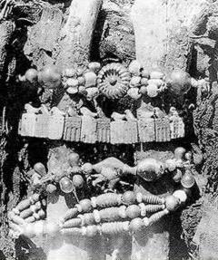 А от фараонов Древнего Царства вообще мало что уцелело. Вот например фараон Хор-Джер - великий, между прочим, деятель Первой Династии (это чертовски давно было). А до нас дошла одна только рука - зато с украшениями.