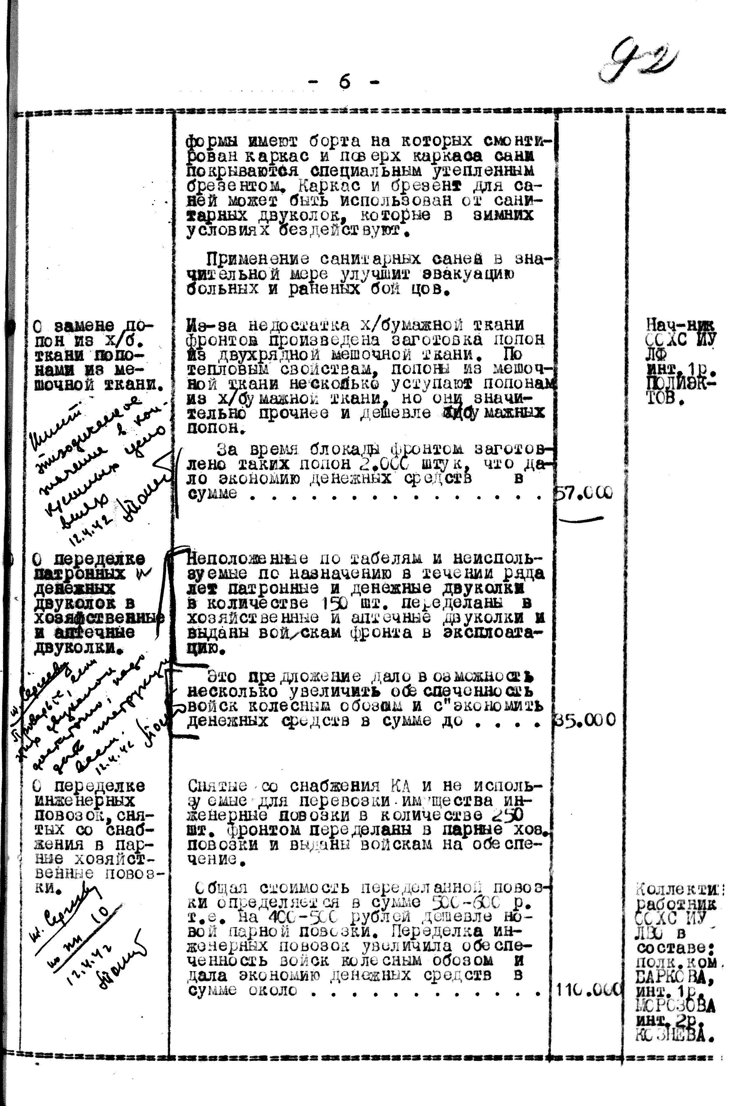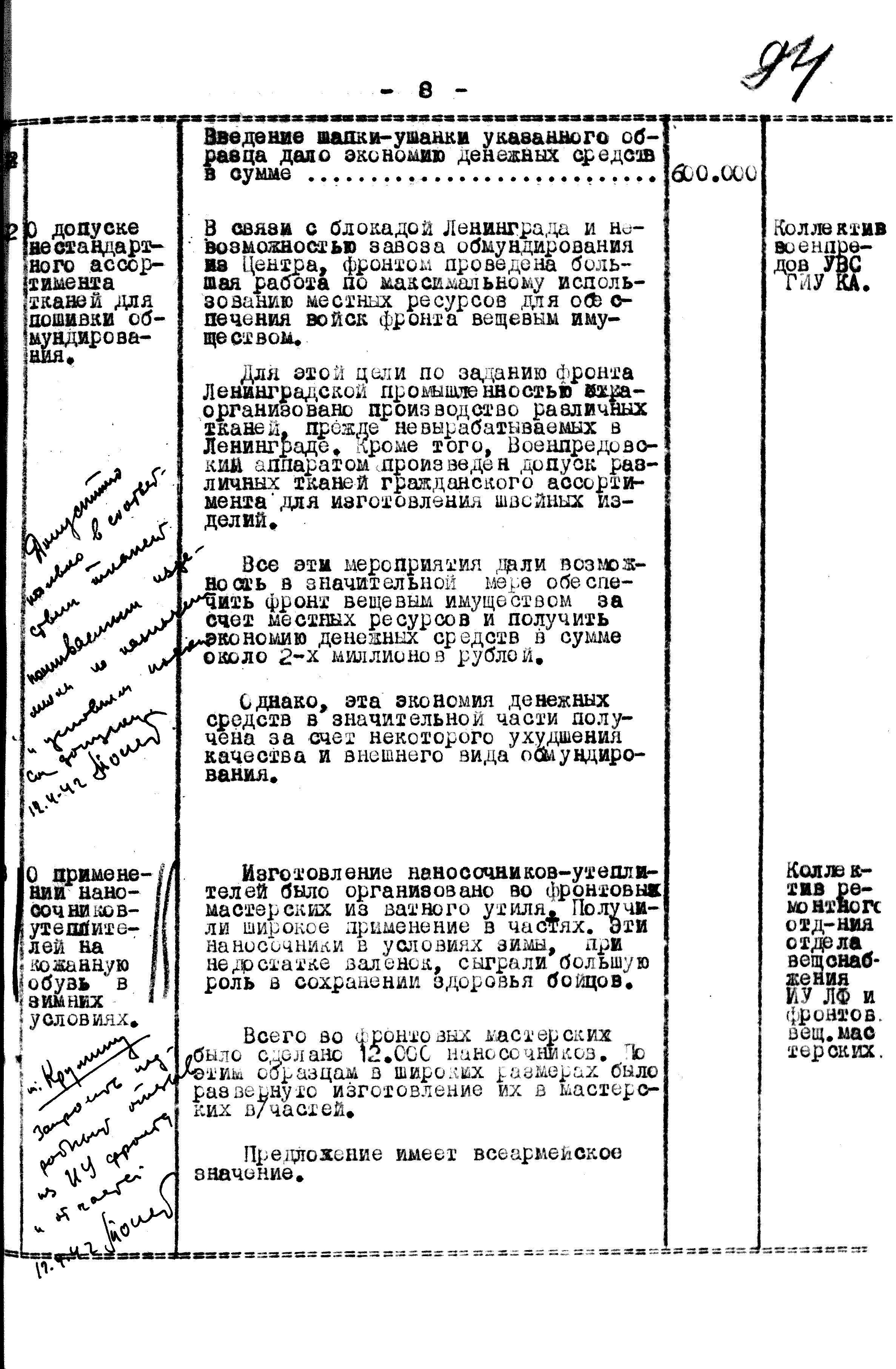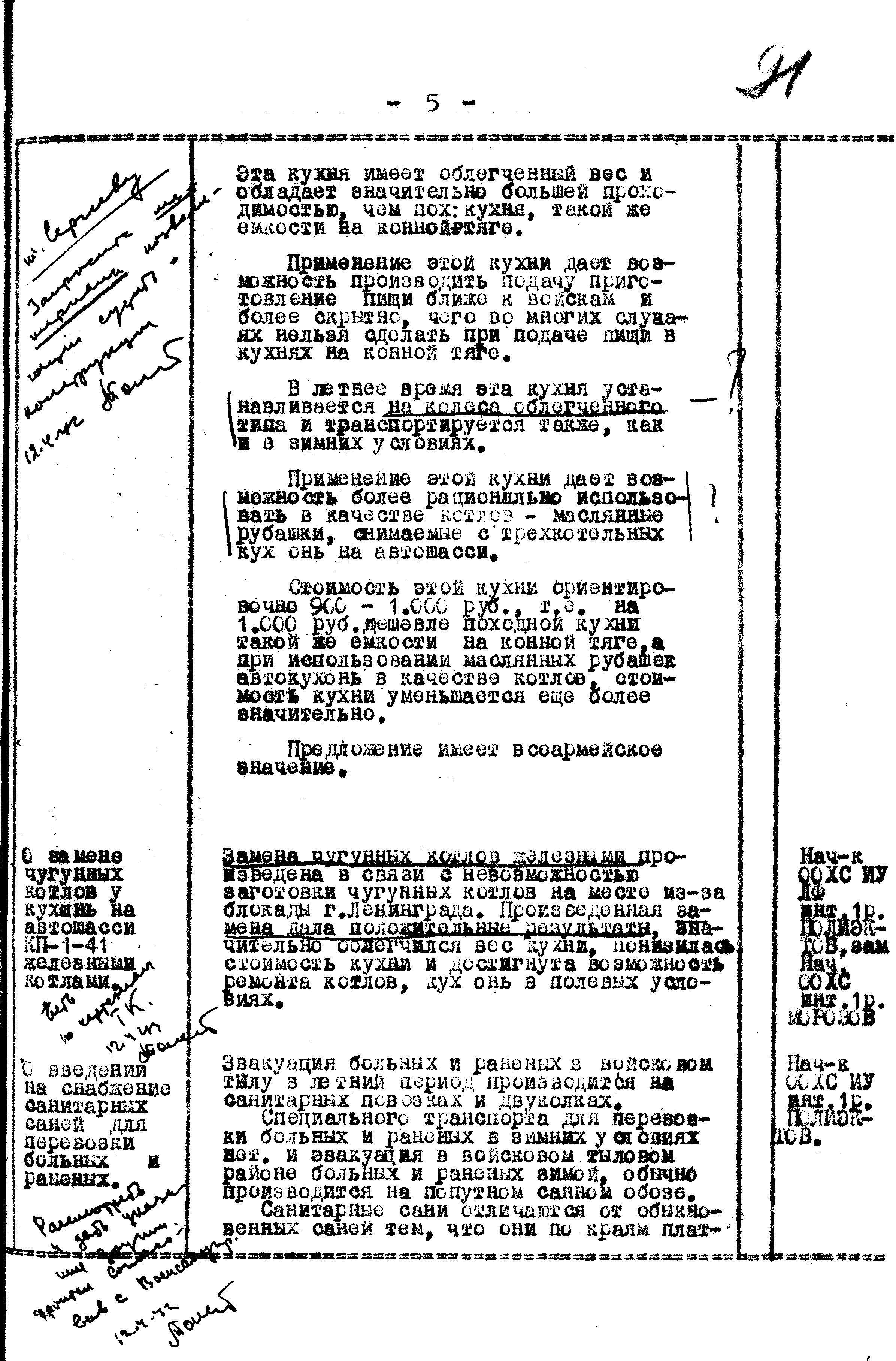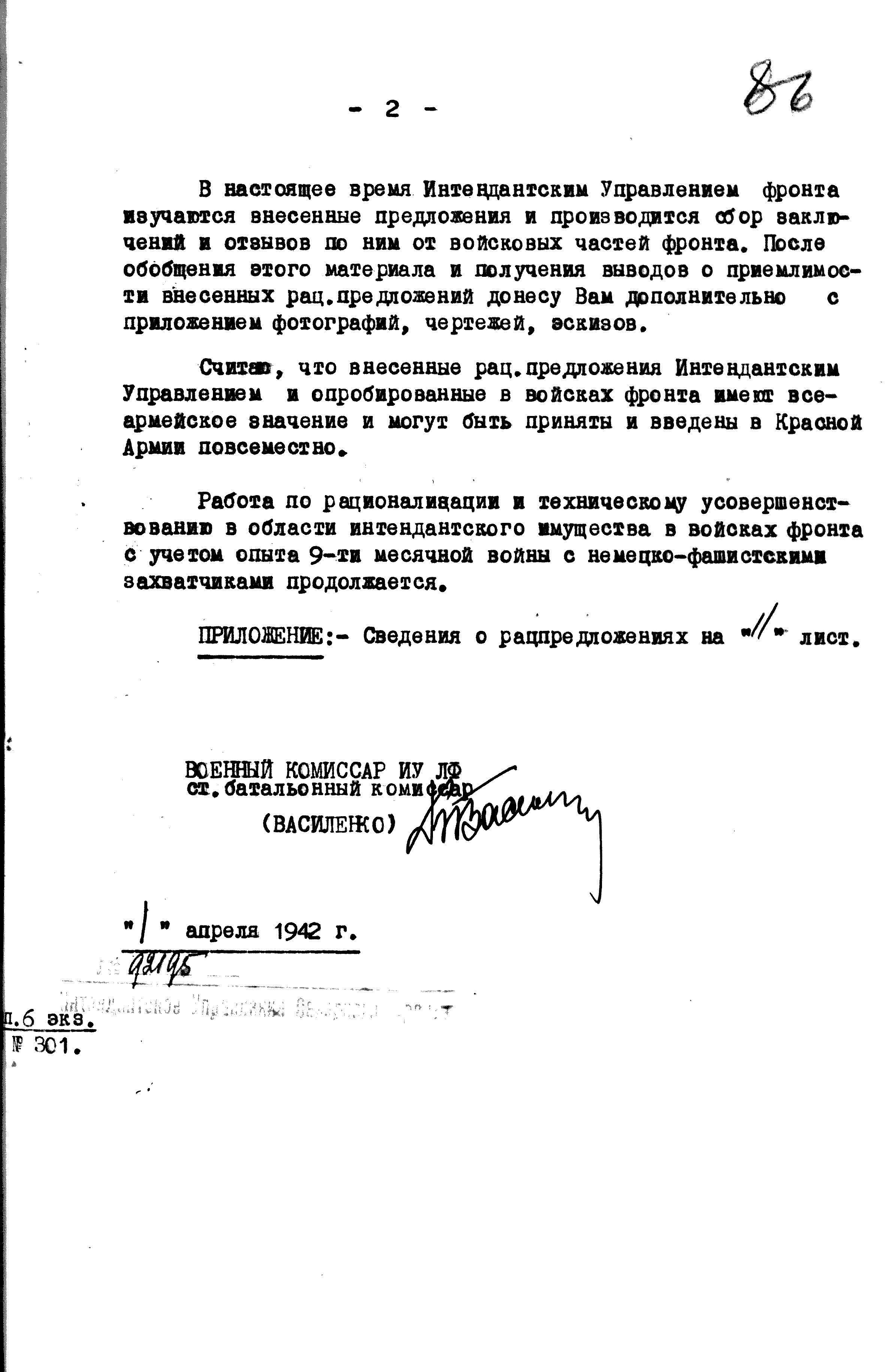 Именно ему и принадлежит предложение, по применению утеплённых ящиков для перевозки хлеба зимой. Этот вопрос оказался настолько важен, что рядом с предложением, стоит жёсткая резолюция одного из руководителей ГИнтУ о срочной доработке этого вопроса и разработке указаний войскам.