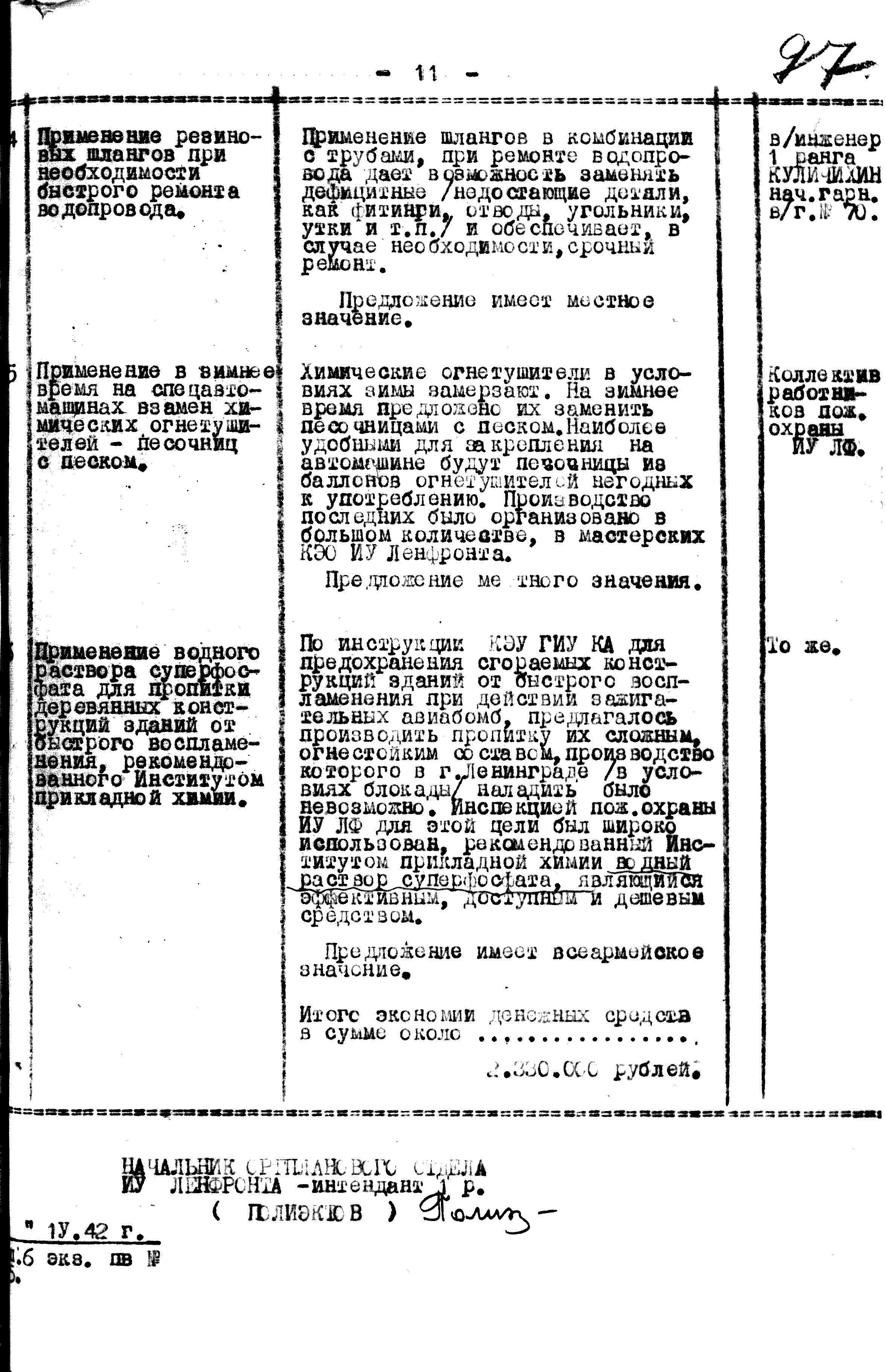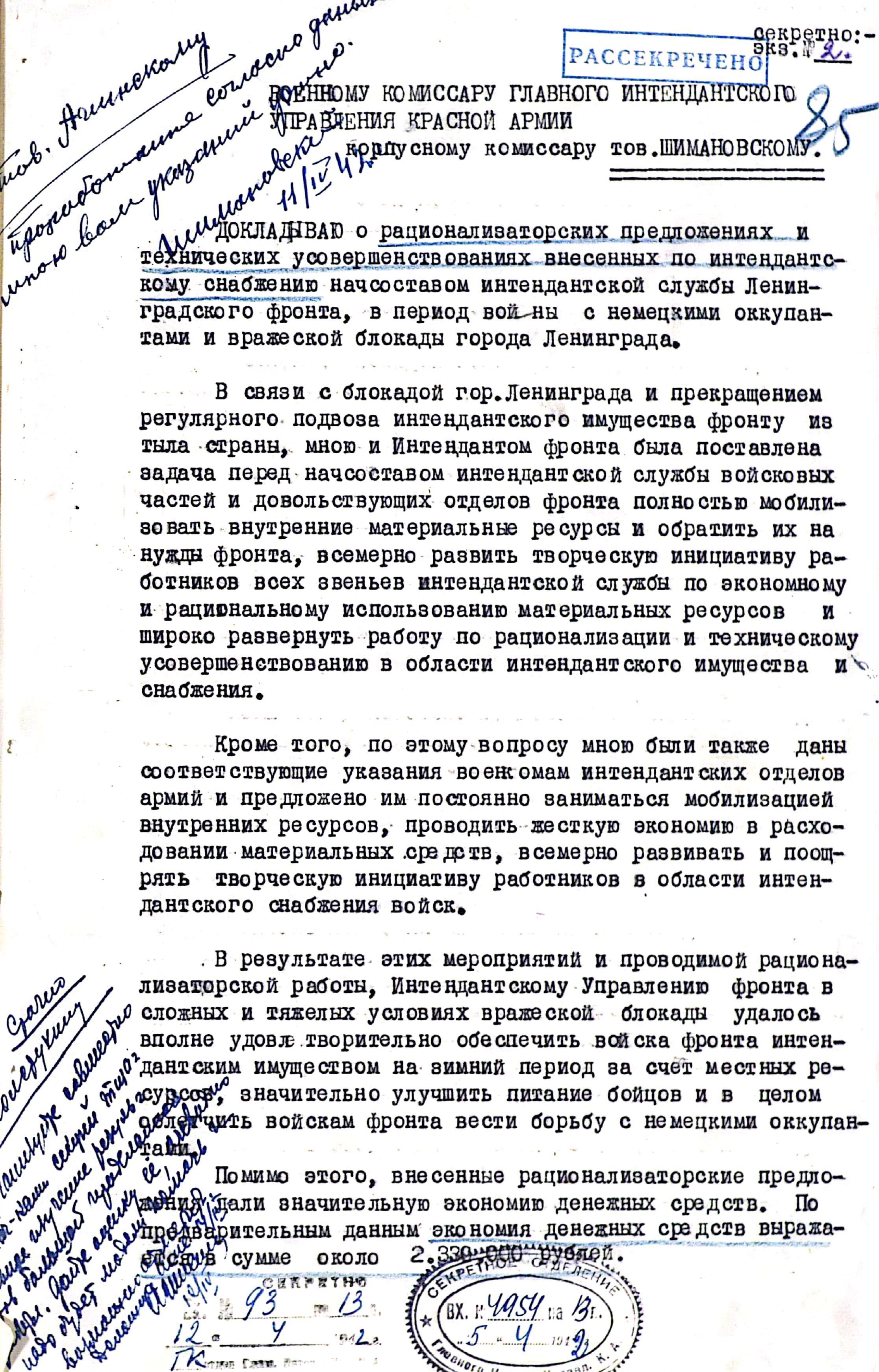 Глядя сегодня на очередное безмолвное свидетельство величайшего подвига защитников Ленинграда, можно только восхищаться мужеством, силой духа ленинградцев. В условиях блокады, они не выживали, а жили, творили, изобретали, думая не только о себе, жителях города и бойцах фронта, но и о всей стране, о всех бойцах и командирах Красной Армии. И я рад, что пожелтевшие страницы из архива, позволили рассказать ещё о нескольких людях, чья работа заключалась "всего лишь" в снабжении Героев обороны Ленинграда.