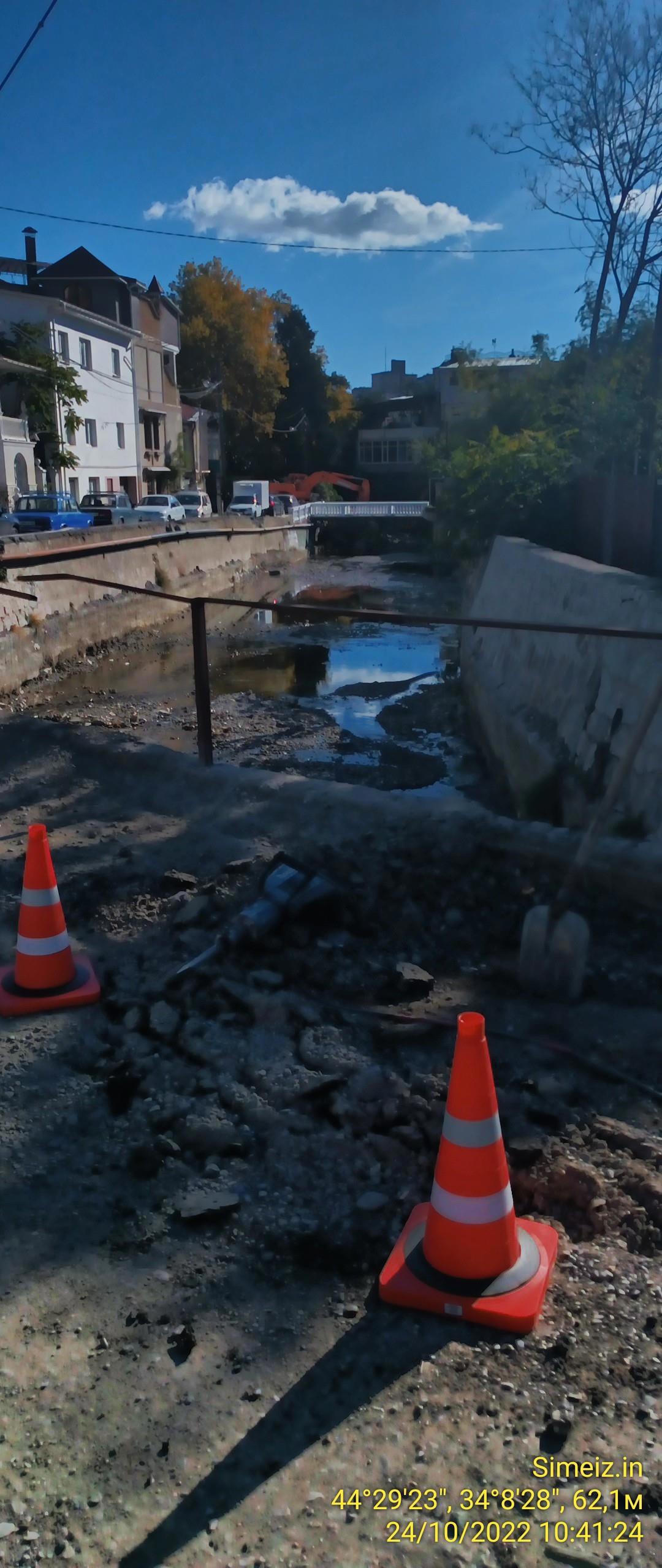 Однако! Сегодня я волей случая поползла пешком по Ялте и навигатор Яндекса, завёл меня в такие трущобно-канализационные проходы ("сократы", как их тут называют - пешие спуски по горным кварталам, чтобы по серпантину не наматывать лишний х5 километраж), что я шла полчаса на стрёме, разглядывая мусор, сомневаясь, уточняя у местных прохожих и слушая канализацию, как мне казалось. Хотя по факту оказался ручей (фото справа).
