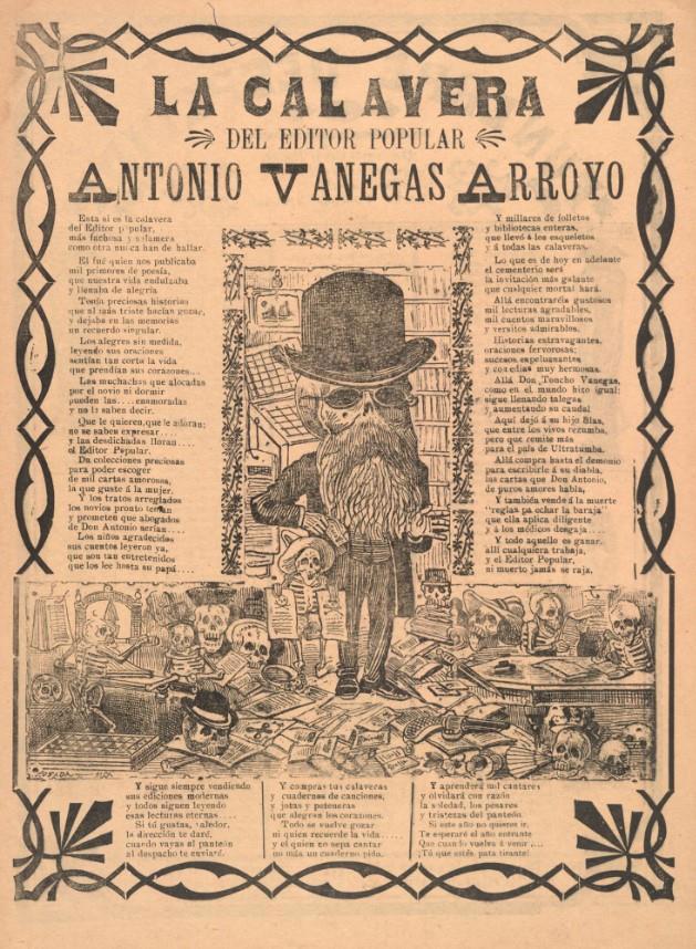 La calavera del editor popular Antonio Vanegas Arroyo (Калавера популярного редактора Антонио Ванегаса Арройо) (1917). Рельефный офорт на деревянной бумаге с натуральным грунтом.