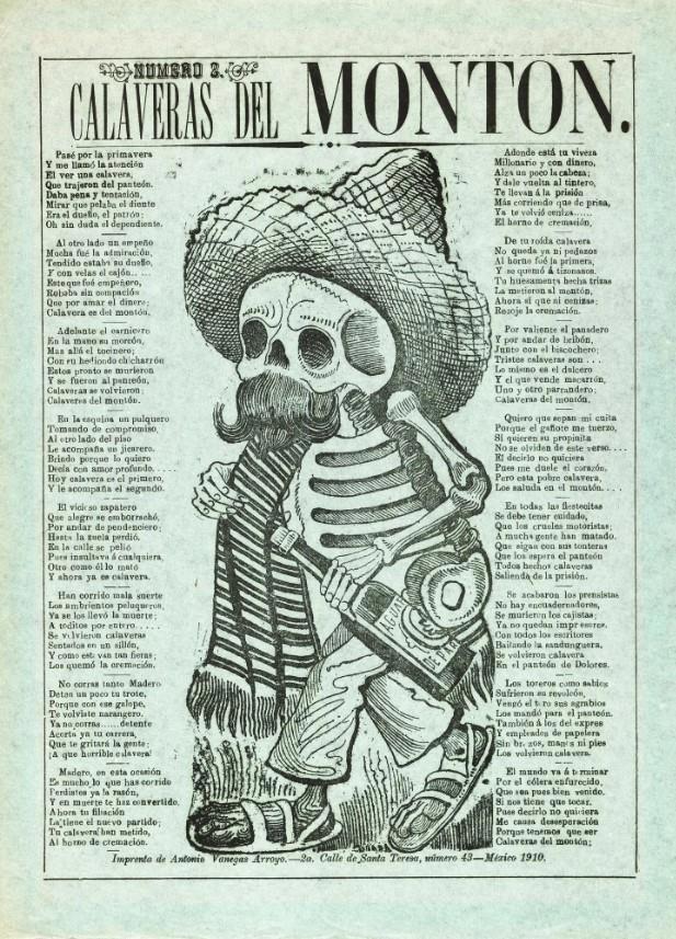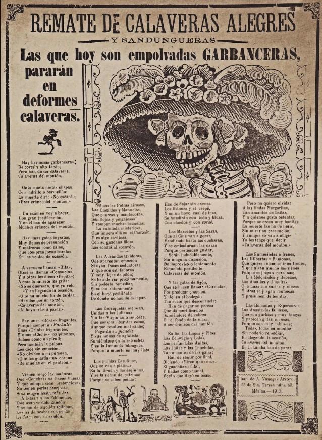 Оригинальное произведение было опубликовано на бродсайде вместе со стихотворением. Юмористическая поэзия довольно распространена во время празднования Дня Муэртоса, а стихи, известные как литературные калаверасы, написаны, чтобы напомнить живым об их собственной смертности. Для Посады смерть была великим уравнителем. Известно, что он говорил, что "смерть демократична". Независимо от цвета кожи или вероисповедания, богатства или бедности, все в конце концов превращаются в череп.