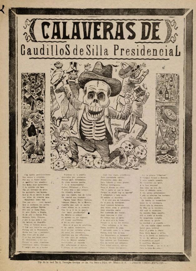 Афиша с изображением Ла Калавера Гарбансера (Калавера модной дамы) (1913 г.). Рельефный офортна цинке. Источник: Википедия