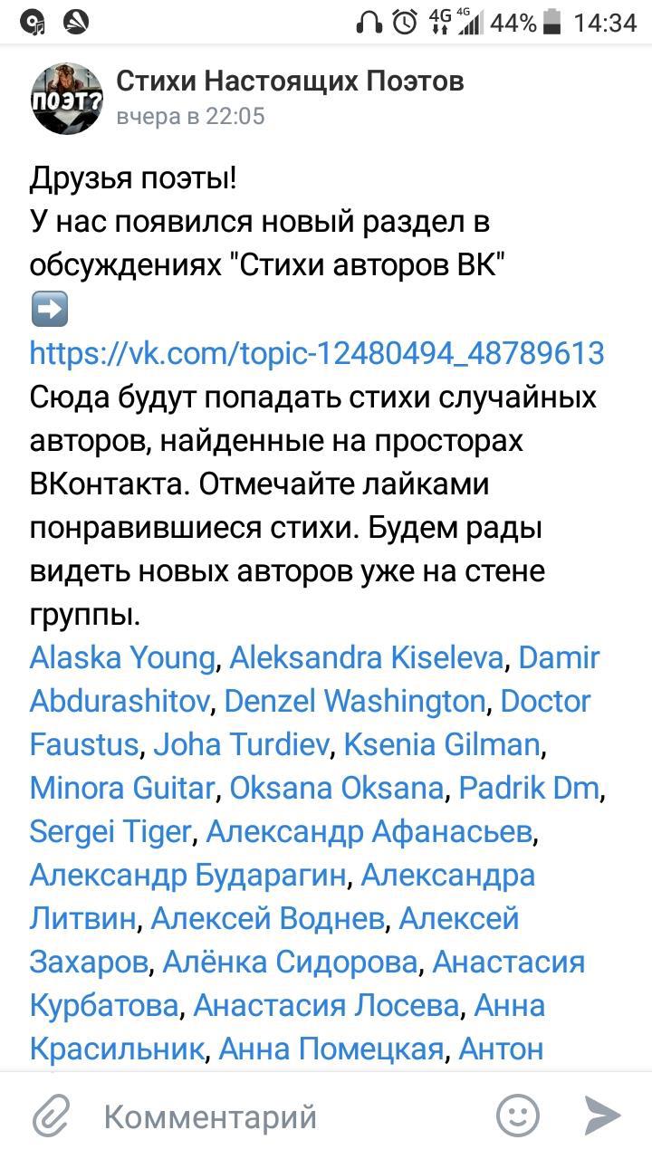 Автор: DarknessМне сегодня в Вк пришло уведомление, что меня упомянули в группе Стихи Настоящих Поэтов. Зашла посмотреть, а там выложили мой стих 2020 года написания к дораме Незнакомцы из Ада. Я когда-то писала для группы фанатов азиатских дорам. Неожидала, что его выложат. Вот ссылка: https://vk.com/wall-12480494_280469