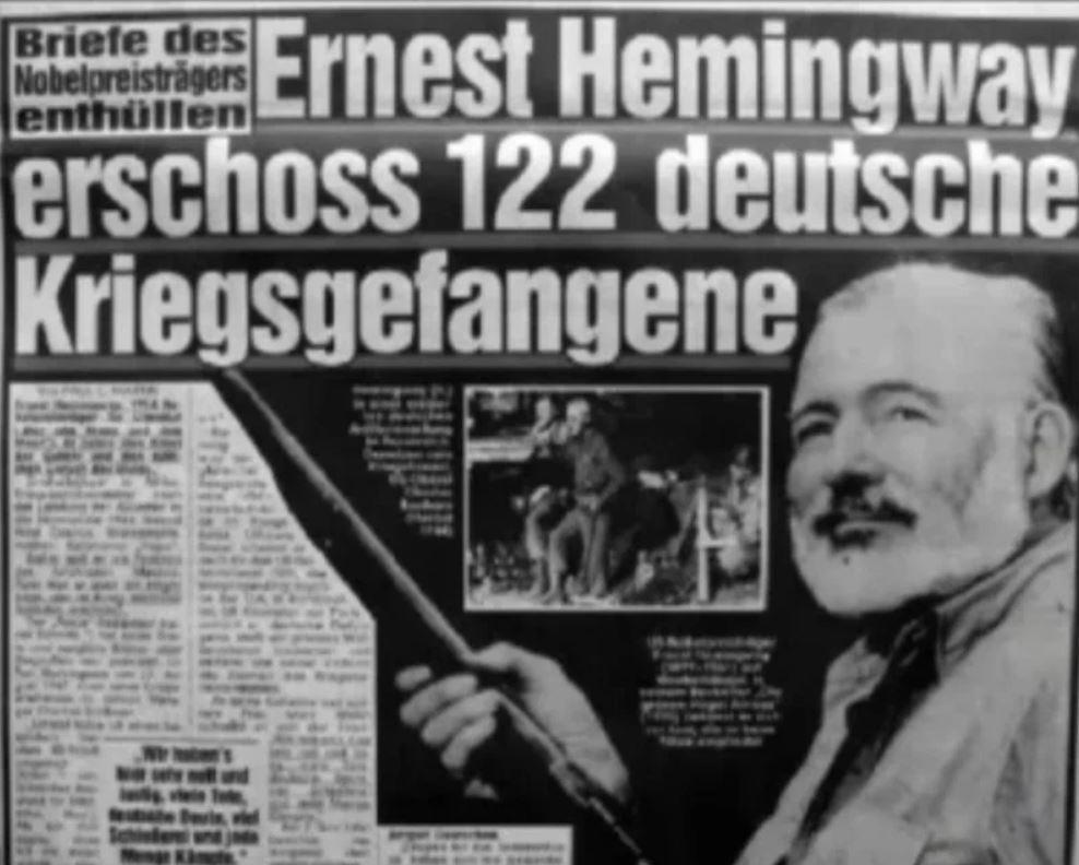2 июня 1950 года Хемингуэй сообщил своему другу профессору Артуру Миценеру, что убил 122 немца. По его словам, одной из его последних жертв был молодой солдат, пытавшийся сбежать на велосипеде — «примерно в возрасте моего сына Патрика».