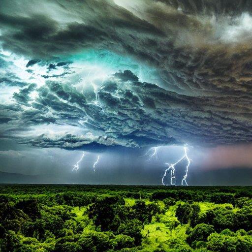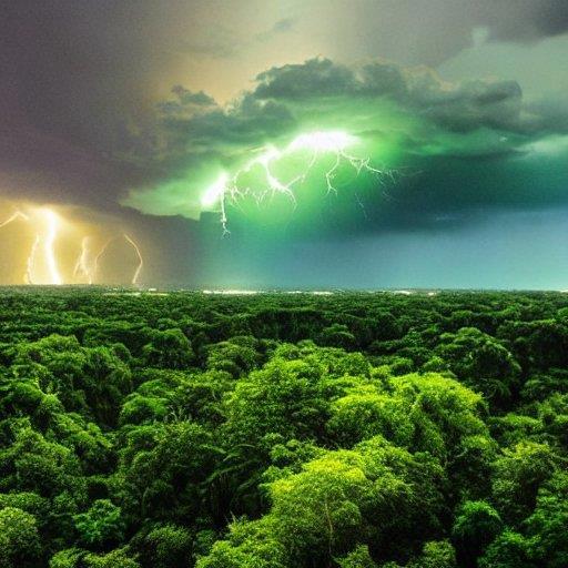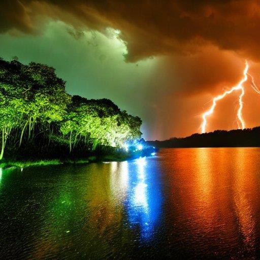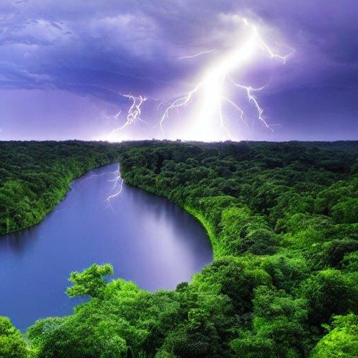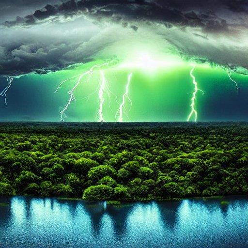 Автор: Terra-21Есть такие рассказ Леонида Гирсова "Морис" и роман Эми Томсон "Цвет дали", и к ним по словам "инопланетная гроза зелёные джунгли тёмная река розовые молнии" нейросеть Stable diffusion demo нарисовала картинки, лучшие из которых представляю здесь: