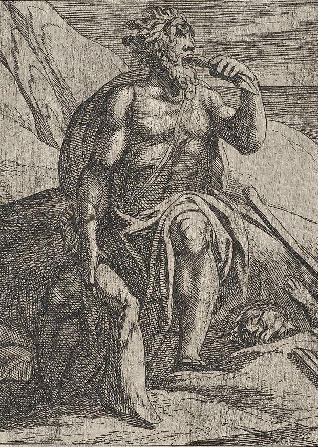 | 24/31 УЖИН С КАННИБАЛОМ Гостеприимства поправ закон, Полифем Одиссея пленил. И вскоре был огонь разведен — Великан шестерых потрошил. От ужаса содрогался царь, Слыша треск раздроблённых костей. Смеялась одноглазая тварь, Жаря в мрачной пещере гостей. «Ну что ж, Никто, вот и ужин твой», — Прорычал Одиссею циклоп. Заплакал от бессилья герой, И сотряс его тело озноб... 24.10.2022 | ![]() |