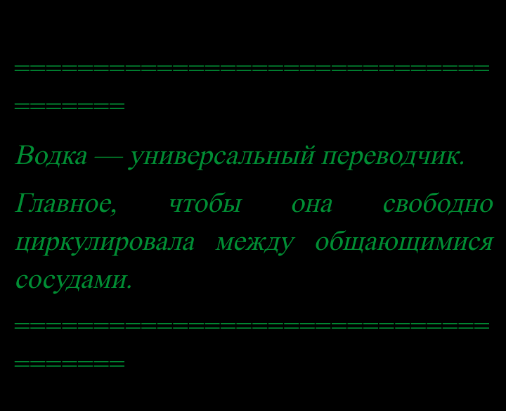 Водка — универсальный переводчик. Главное, чтобы она свободно циркулировала между общающимися сосудами.