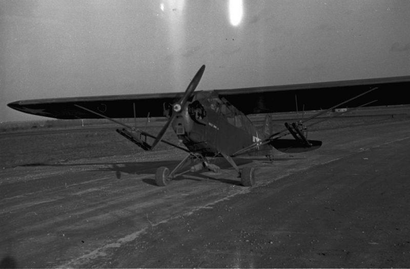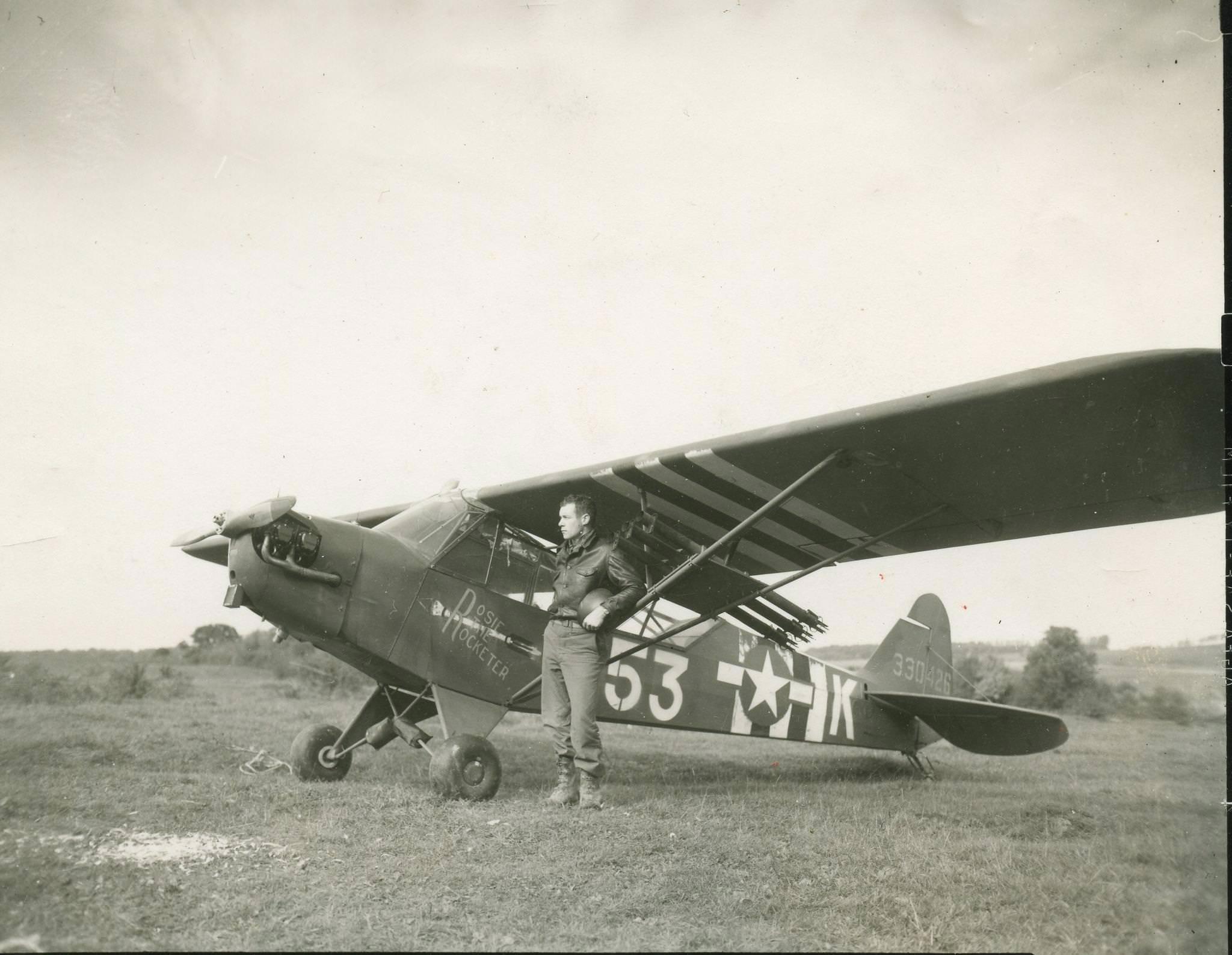 Хорошая новость – его выучили на летчика. Отличная – он получил назначение в 1-ю бомбардировочную дивизию. Плохая – ему предстояло стать пилотом легкого разведывательного и связного L-4 Grasshopper (Piper Cub), в части обеспечения 3-й армии Паттона. "Кузнечик" был очень легким самолетиком. Он мог поднять в небо пилота, наблюдателя, рацию… и, если наблюдатель был не очень толстый, то чугунную сковородку для подкладывания под зад. В общем, рядом с ним даже У-2 мог ощутить себя грозной боевой машиной. Но именно "кузнечикам" выпало стать основными "глазами" союзной артиллерии в ходе высадки в Нормандии.