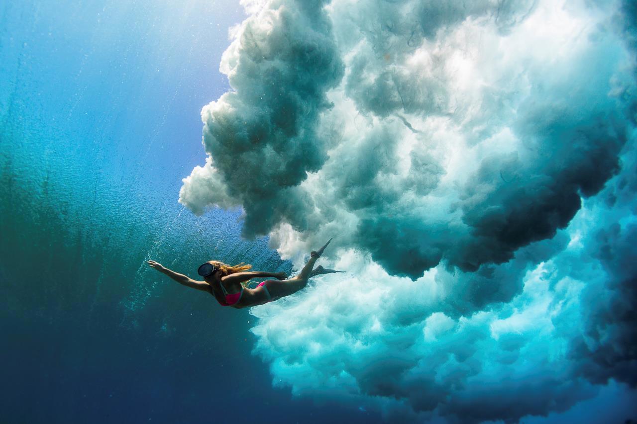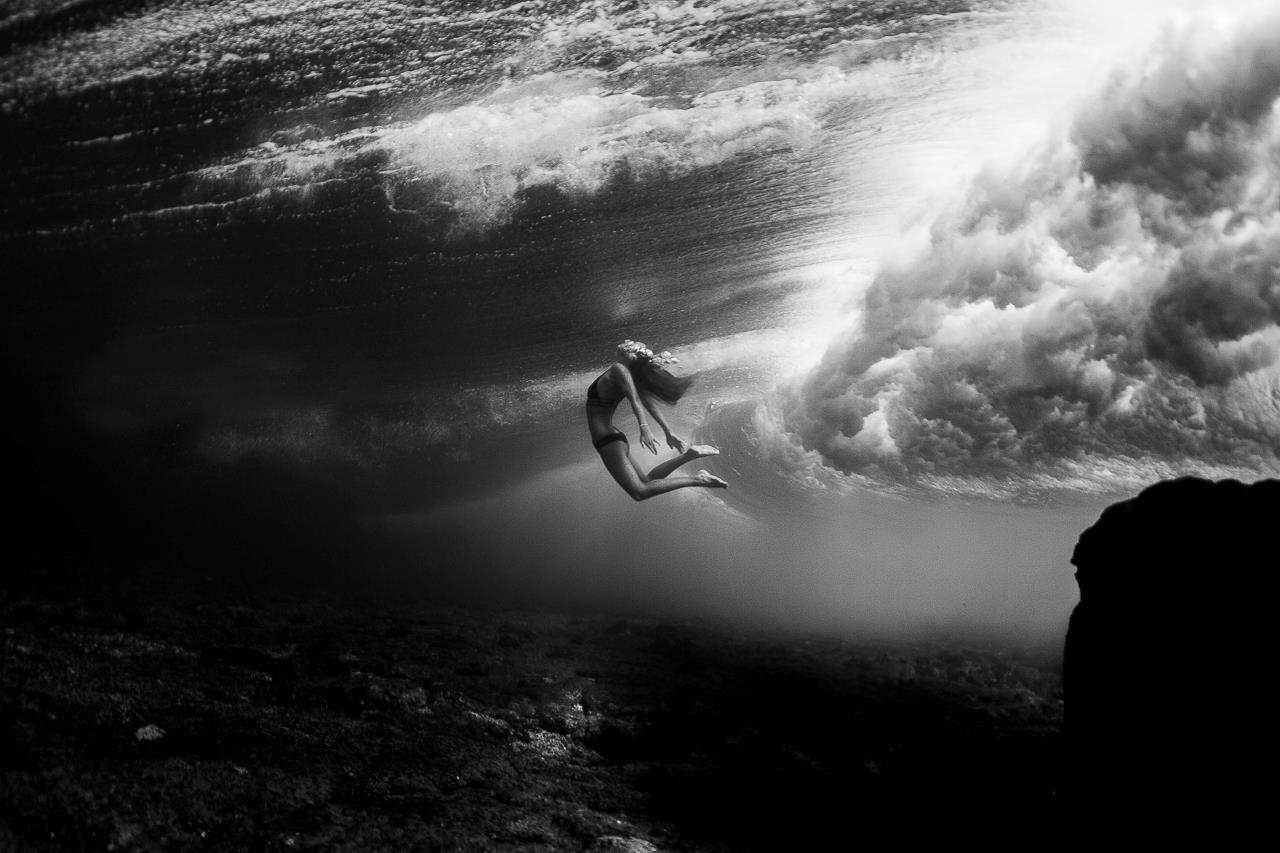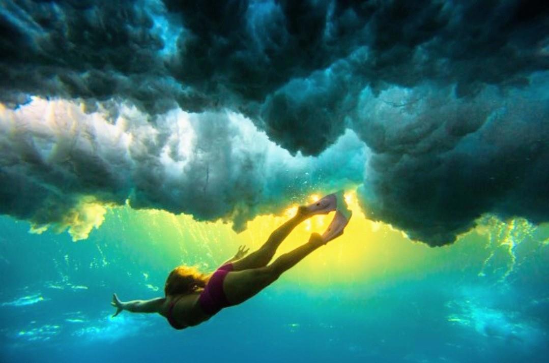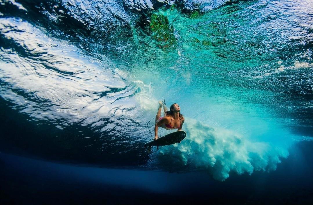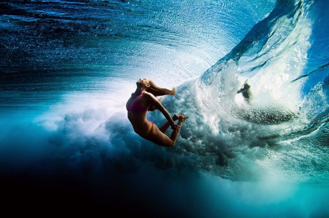 "Этой юной американке всего двадцать один год, а она уже по праву может считаться настоящим мастером подводной фотосъемки. Ей удается делать невероятно динамичные и красочные снимки под водой, особенно в нахлынувшей волне."