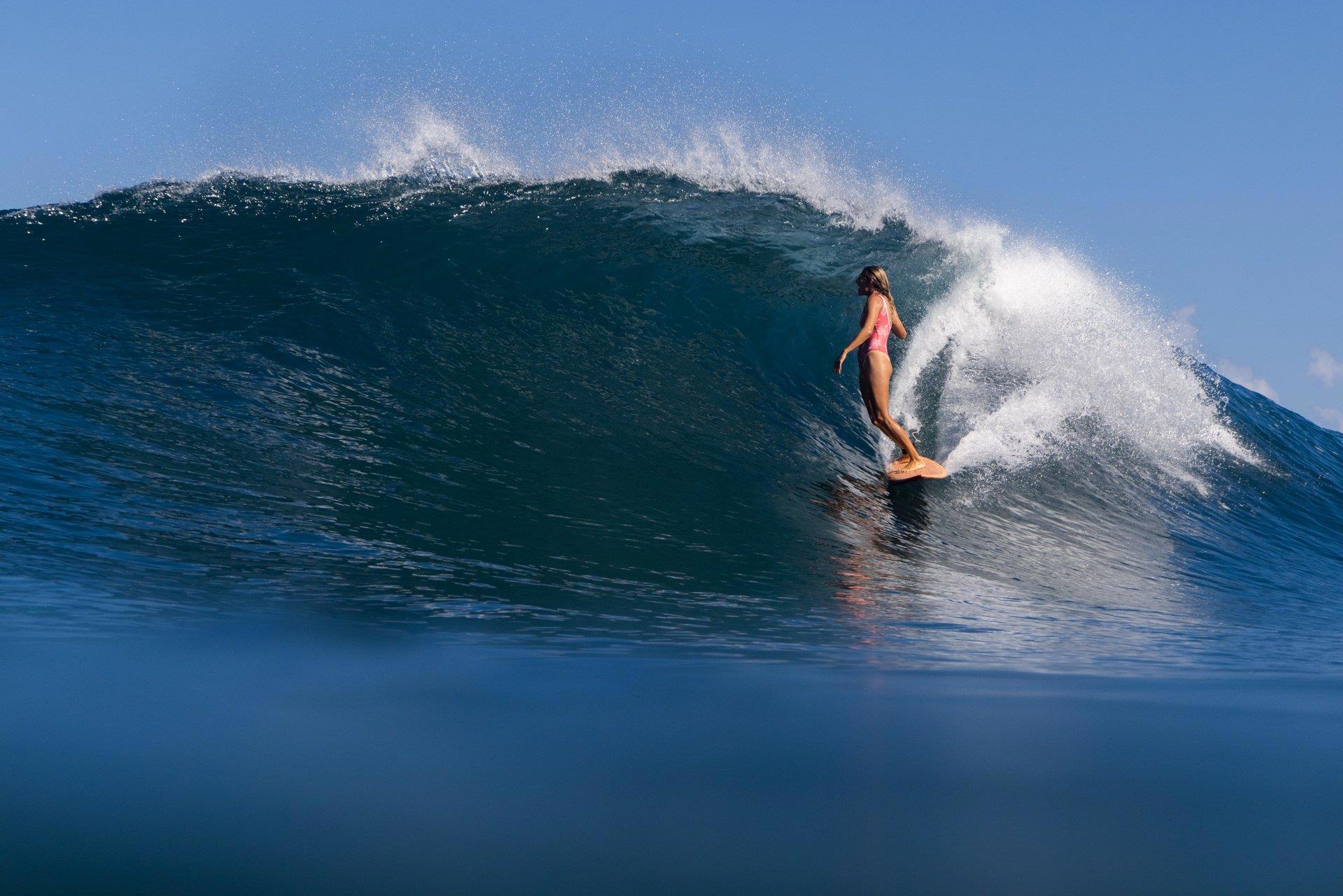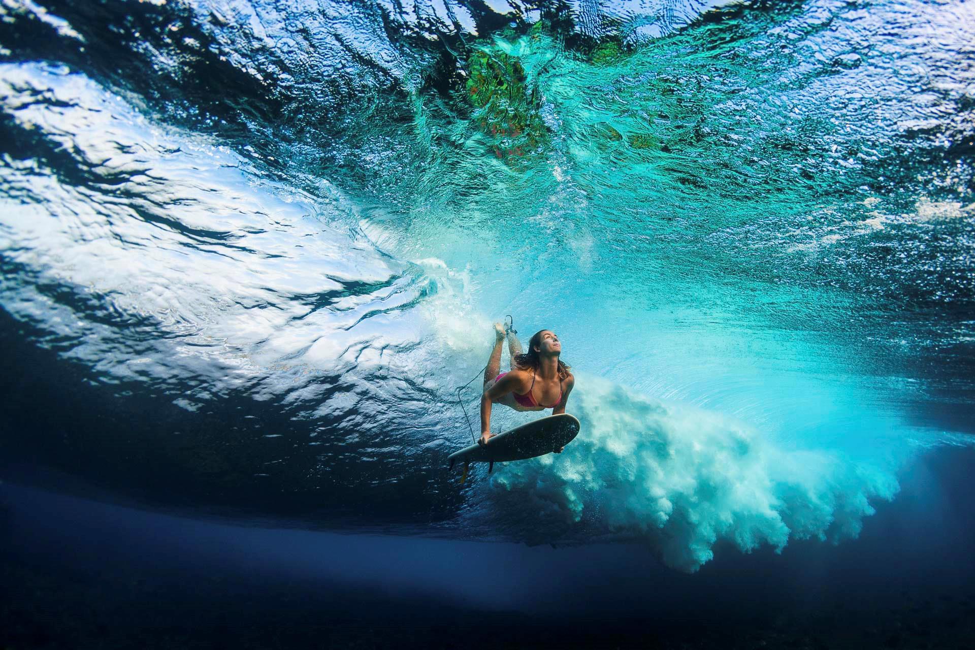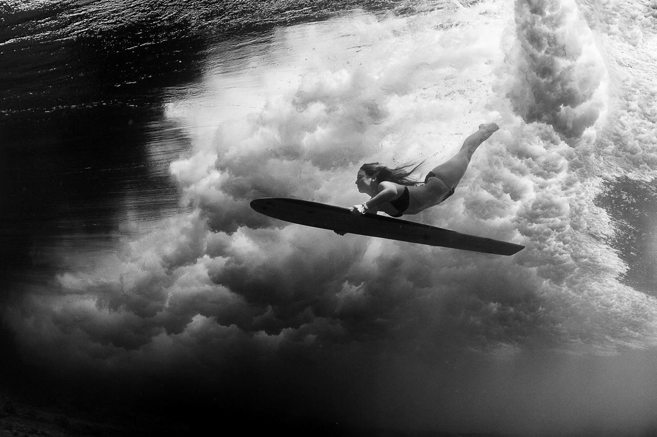 "Этой юной американке всего двадцать один год, а она уже по праву может считаться настоящим мастером подводной фотосъемки. Ей удается делать невероятно динамичные и красочные снимки под водой, особенно в нахлынувшей волне."