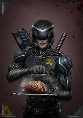 Поэтому я пошел в гугл и набрал там "боец будущего", "мозги" и "услужливый официант с десертиком на подносике". Выбрал самые подходящие картинки и начал творить ТЕХНИЧЕСКОЕ ЗАДАНИЕ.