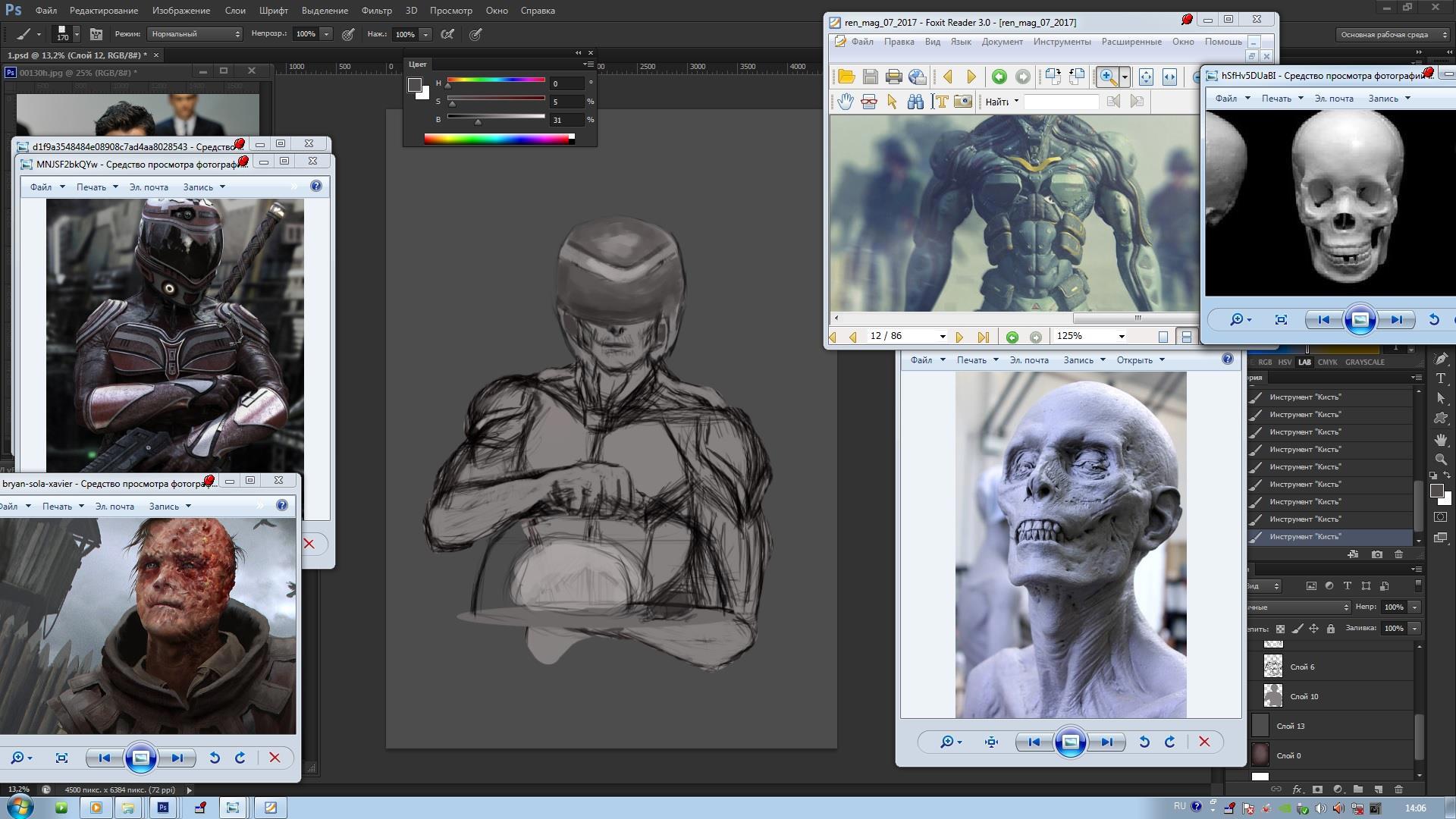 Правда, красавчик? Прямо хоть сейчас на обложку, только не на мою. И я дал "добро" на проработку этого ветерана какой-то войны будущего - причиной которой, похоже, стала пониженная резкость и невысокое разрешение...