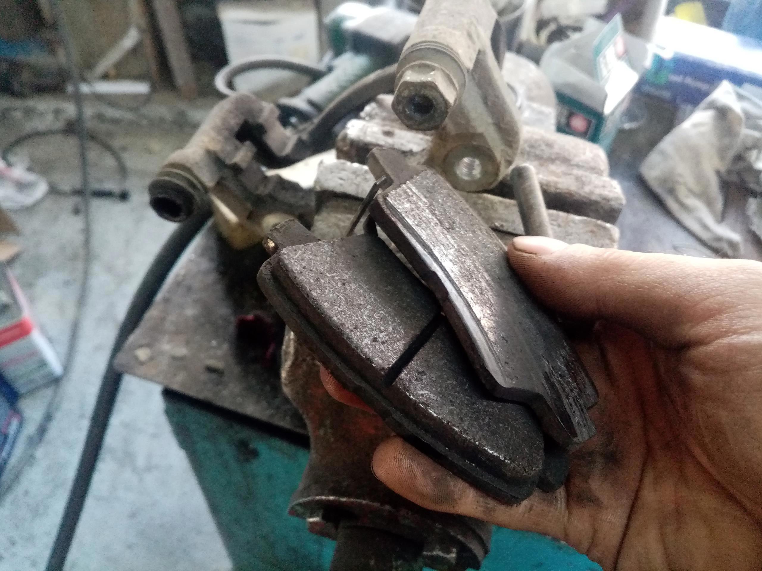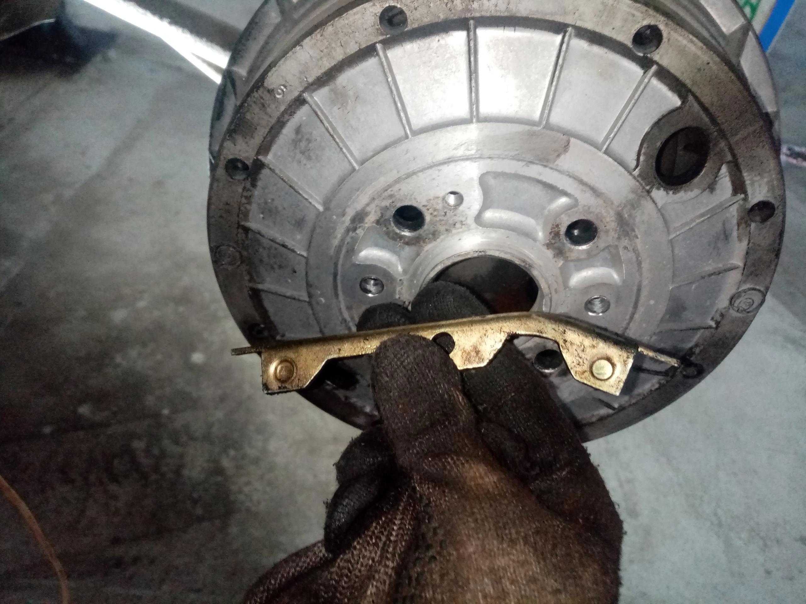 Новая (!) распорная планка колодок. Чуть-чуть устала. Благо у меня одна родная есть, её и поставил. Правая сторона в отличном состоянии. Ещё запарил датчик детонации, который зажигает чек на панели. У меня их теперь охапка, датчиков этих.