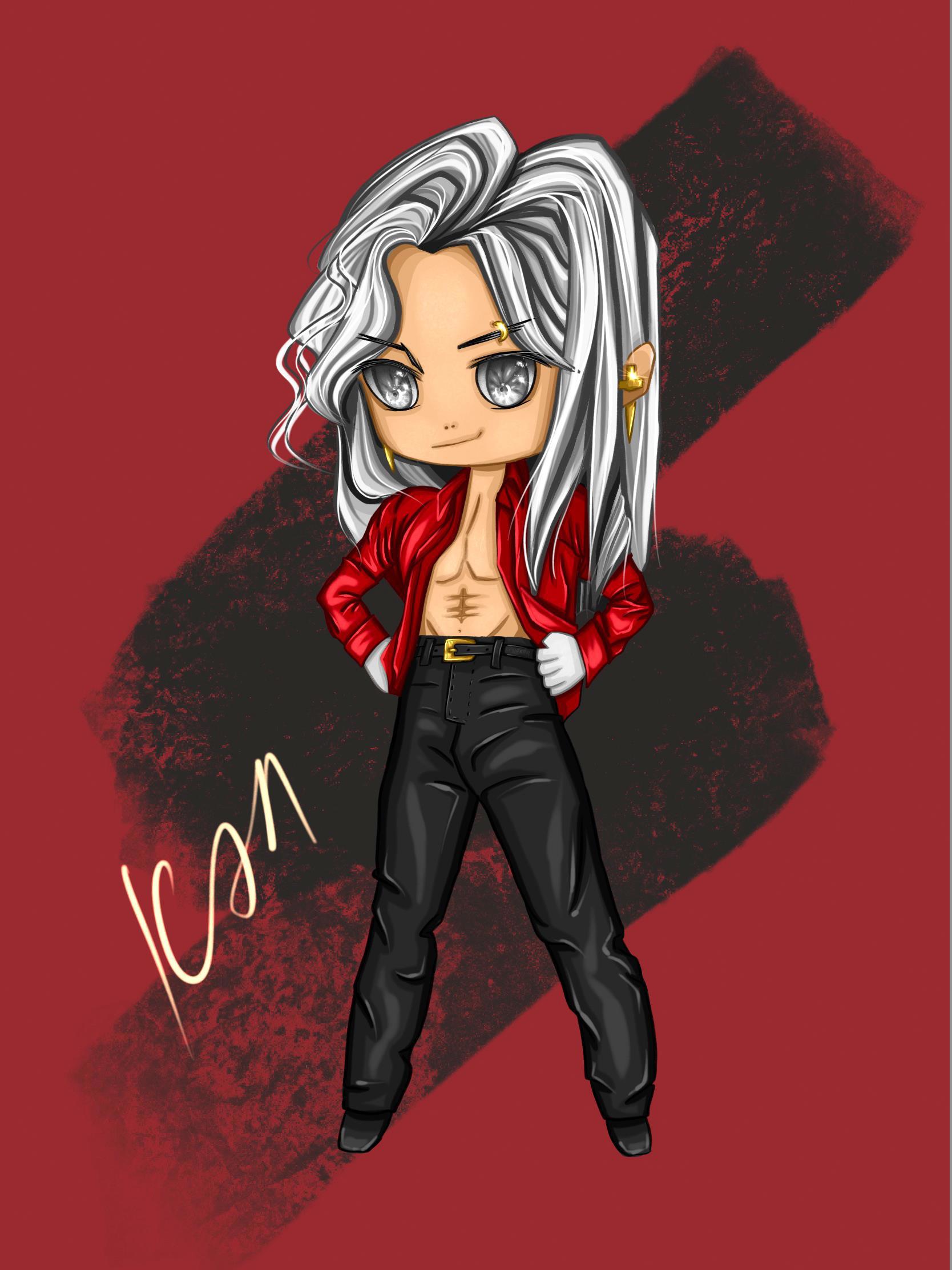 Мой второй чибик (хотя технически четвертый - ведь на первой моей такой картинке было сразу три девчонки), но - он мой первый чибик мужского пола.