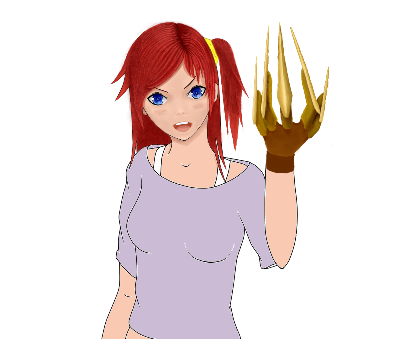 - После завершения основной части работ, я решил попробовать что-то сделать в аниме стиле, но для этого нашел готовый черно-белый шаблон, который оживил цветом и тенями. Получилось весьма забавно, а потом началась вакханалия с какой-то перчаткой, в общем я её тоже отложить решил до покупки планшета.