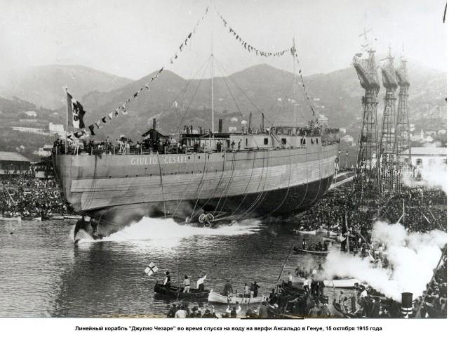 "Джулио Чезаре" был заложен в Генуе летом 1910 года и спущен на воду в 1915 году. В Первой мировой войне линкор участия не принимал, в 1920-х годах использовался как учебный корабль для подготовки морских артиллеристов.