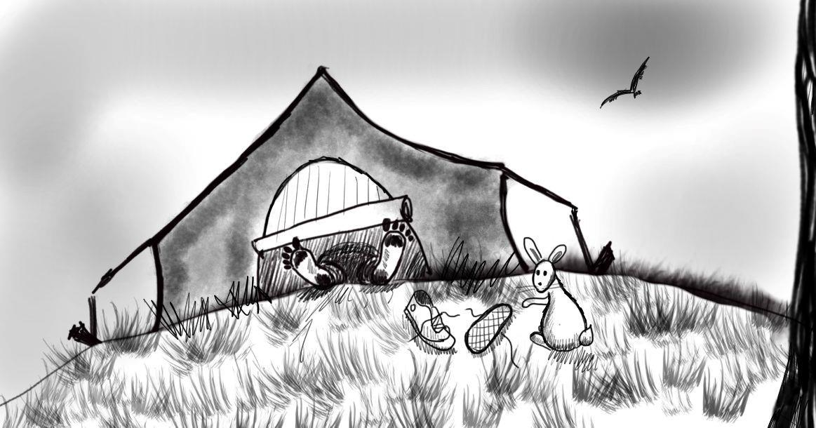 Чувака с предыдущей картинки всё-таки не доели, и он разбил палатку)