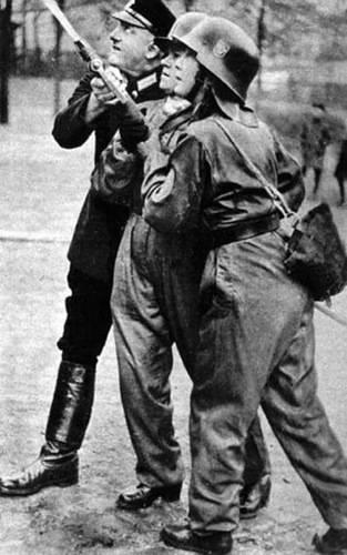 Пожарные. Тоже хрен поймешь кто по положению. Мобилизованные доброволицы, пожарные относятся к полиции, а та к СС, но девахи эсэсовками не были. Так, не пришей кобыле хвост. Сдохнуть запросто - а привилегии - не заслужила.