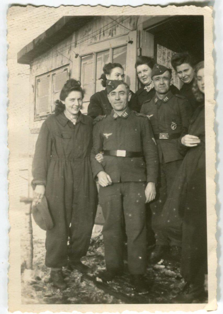 Не пойми кто по статусу - вольнонаемные охранницы концлагеря. Относятся как бы к СС, но не совсем как бы СС. Формально ы "Мертвой голове", но права ношения соответствующих знаков не имеют. Все тот же переходящий в лютый бардак немецкий орднунг.