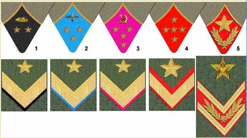 1- генерал-майор танковых войск, 2-генерал-лейтенант авиации, 3-генерал-полковник интендантской службы, 4- генерал армии, 5- маршал Советского Союза.