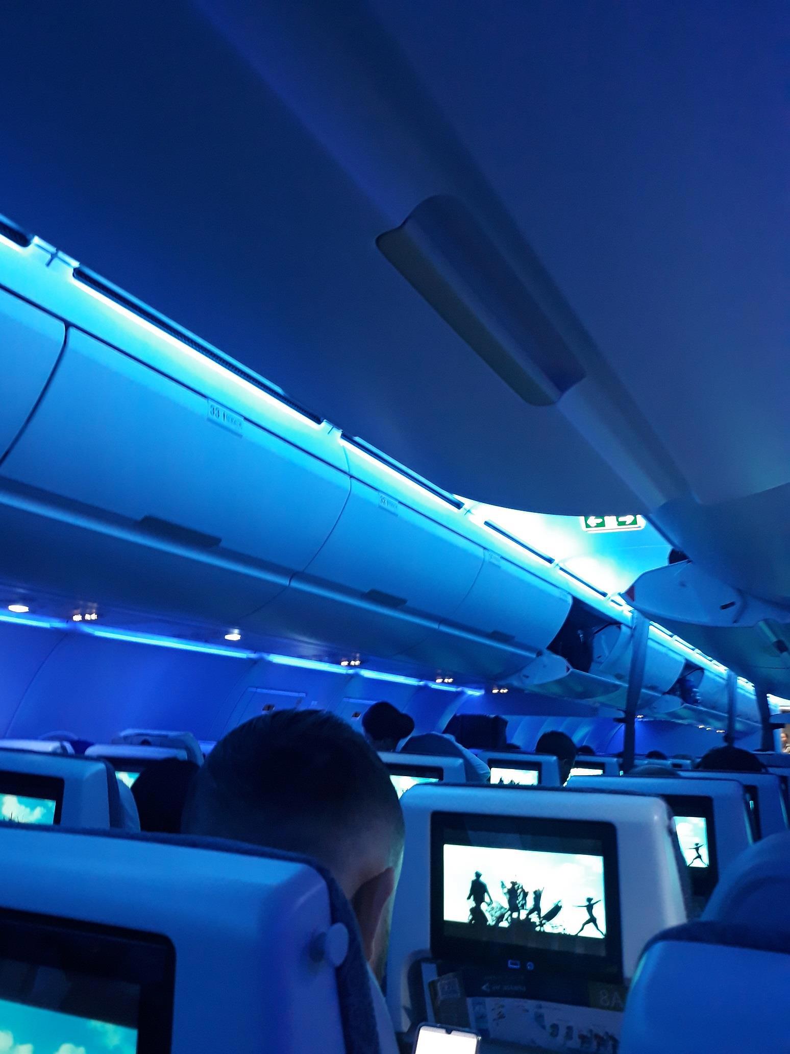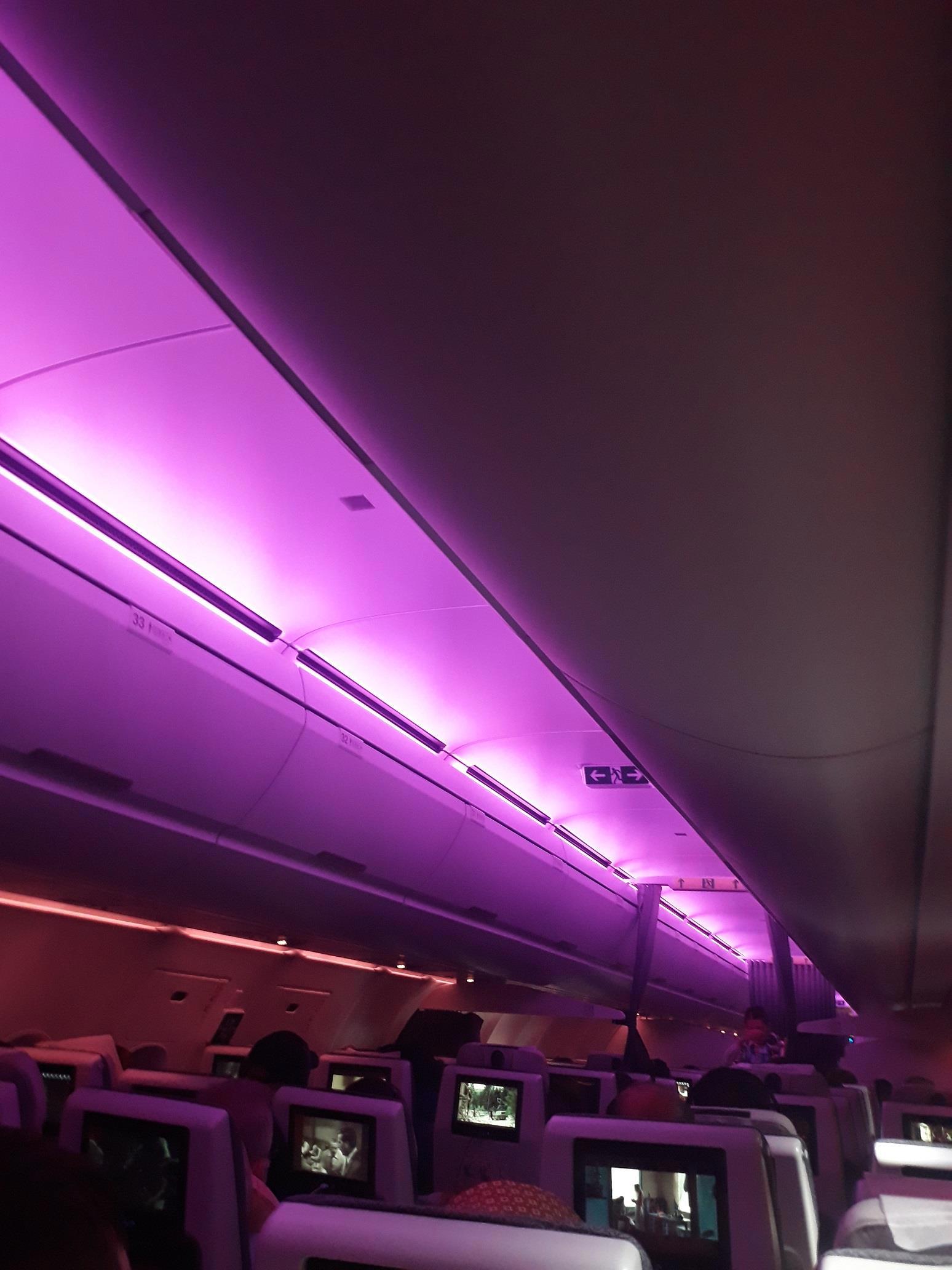 В самолетах красивая голубая и малиновая подсветка, выдают всем по наушникам, надувной подушке, берушам и даже шерстяным носкам. Кормят вполне себе и халявная выпивка даже в эконом-классе.