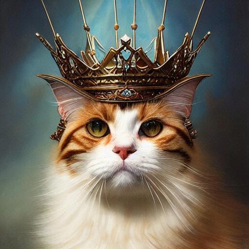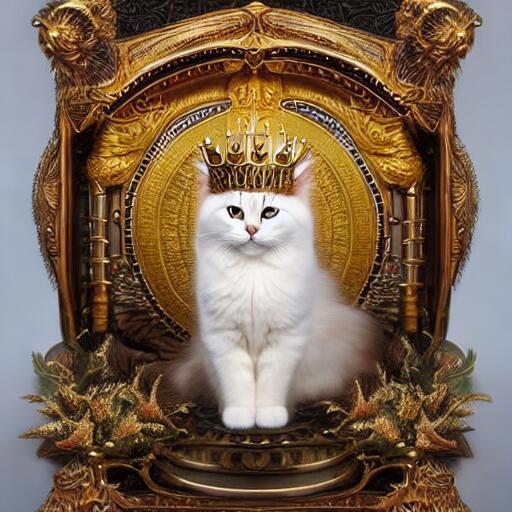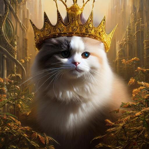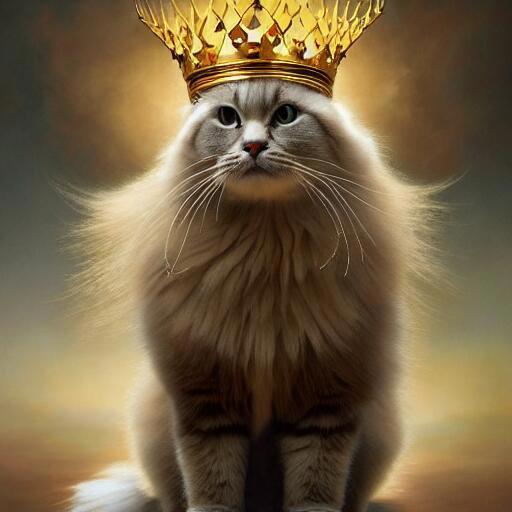 Ragdoll cat king wearing a golden crown, intricate, elegant, highly detailed, centered, digital painting, artstation, concept art, smooth, sharp focus, illustration, artgerm, Tomasz Alen Kopera, Peter Mohrbacher, Donato Giancola, Joseph Christian Leyendecker, WLOP, Boris Vallejo